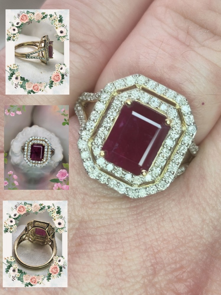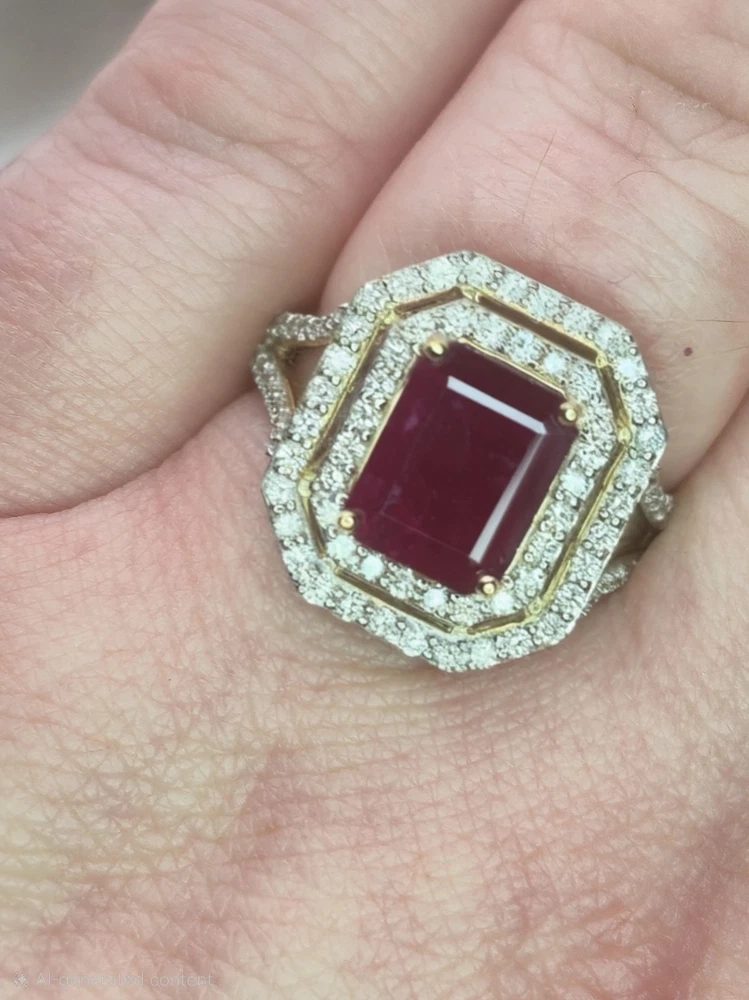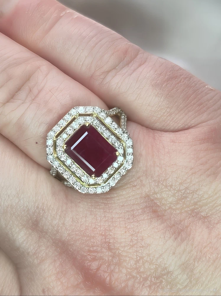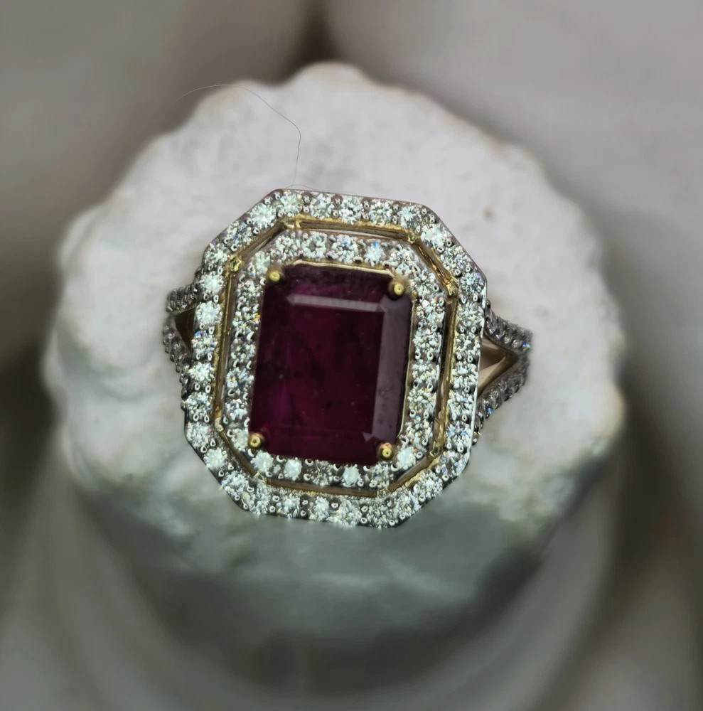 All pieces are directly from Manufacturing Wholesaler Brand New THE THE PHOENIX FIRE COLLECTION JULY BIRTHSTONE 40th ANNIVERSARY MOH SCALE: 9/10 DESCRIPTION Crafted in 14ct Yellow Gold and Featuring 1x Natural & Untreated Rich Red Ruby in an Emerald Cut & a Surrounded by a Gorgeous Fancy Double Halo of Natural White Diamonds in Round Brilliant Cuts. Weight: 5.00 grams Ring Size: M1/2 1x Natural & Untreated Ruby in an Emerald Cut Weighting a Total of 2.75ct White Round Brilliant Cut Diamonds Weighting a Total of .73cts Colour: G/H Clarity: Si - I1 A quick note on pricing: I source all my items through a much-loved local manufacturing wholesaler on consignment. To keep things fair for the maker, my discount power is limited. Please keep this in mind when making an offer—I’d love to find these pieces a home, but I need to honor the value set by my local supplier, thank you. ACCREDITATION Registered with the Nationally Recognised Governing Body of Australia to Ensure Industry Standards. All Valuers Are Nationally Registered Members of- - Australian Jewellery Valuers Guild - Jewellers Association of Australia (JAA) - Gemological Association of Australia Member (GAA) Independent Valuation Provided Retail Replacement Value $33,300.00 All Brand New Pieces Come With A 12 Month Manufacturing Warranty RUBY FACTS Rubies, known for their deep red color, are considered the stone of passion, vitality, and strength. Often referred to as the "king of gemstones," rubies are believed to enhance energy and provide protection against misfortune. They are thought to bring courage, boost confidence, and help in achieving one's goals. Like many gemstones, rubies are made under extreme heat and pressure below the earth. When compressed, oxygen and aluminum atoms turn into corundum. This mineral, along with the presence of chromium, creates rubies and their distinct hue. In Burma—a significant ruby source since at least 600 AD—warriors believed that rubies made them invincible. They even implanted rubies into their skin to grant protection in battle. Burmese rubies are still some of the most prized of all ruby gems.