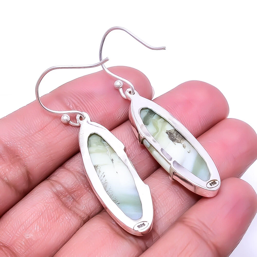Theme Beauty Main Stone Depth As Seen in Picture Main Stone Length As Seen in Picture Main Stone Width As Seen in Picture Seller Warranty Yes Shape As Seen in Picture SKU E_8007_340_21 Antique Yes Handmade Yes Type Earring Style Drop/Dangle Metal Sterling Silver Metal Purity 925 Parts Per 1000 Base Metal Sterling Silver Total Carat Weight 36 Ctw Main Stone Serpentine Main Stone Creation Natural Main Stone Color Mint Green Main Stone Treatment Natural Material Gemstone, Stone Number of Gemstones 2 Item Length 1.95" Features Engraved, Nickel-Free, Handcrafted Ear Area Lobe Brand Unbranded Country/Region of Manufacture India Country of Origin United States Color As Seen in Picture Closure Wire Hook Diamond Clarity Grade Not Applicable Number of Diamonds As Seen in Picture Item Diameter As Seen in Picture Diamond Color Grade Not Applicable Customized No Colored Diamond Intensity Not Applicable Certification 100% Genuine Guaranteed Setting Style Bezel Occasion Christmas, Birthday, Anniversary, Engagement, Wedding, Valen Shipping & Handling - Charge - 1st item-5.90 And Additional item-1.90 Handling Time - 1 Days . Delivery Time - 2 TO 3 DAYS. Shipping Service - USPS First Class Package 2 -3 Days. Returns - 1.We offer a 100% Money Back Guarantee minus shipping for 30 days after receiving the Item / item's. 2..The item must not be altered or damaged in any way shape or form. 3.Upon receiving these items your payment will be refunded. 4.Email us for return instructions before sending merchandise back. 5.Please allow up to 1 business day for all returns to receive credit. 6.Sizing does not affect the return policy. Payment - We accept PayPal for Payment ,should made with in 14 days once buying or winning done , in case of late information expected .
