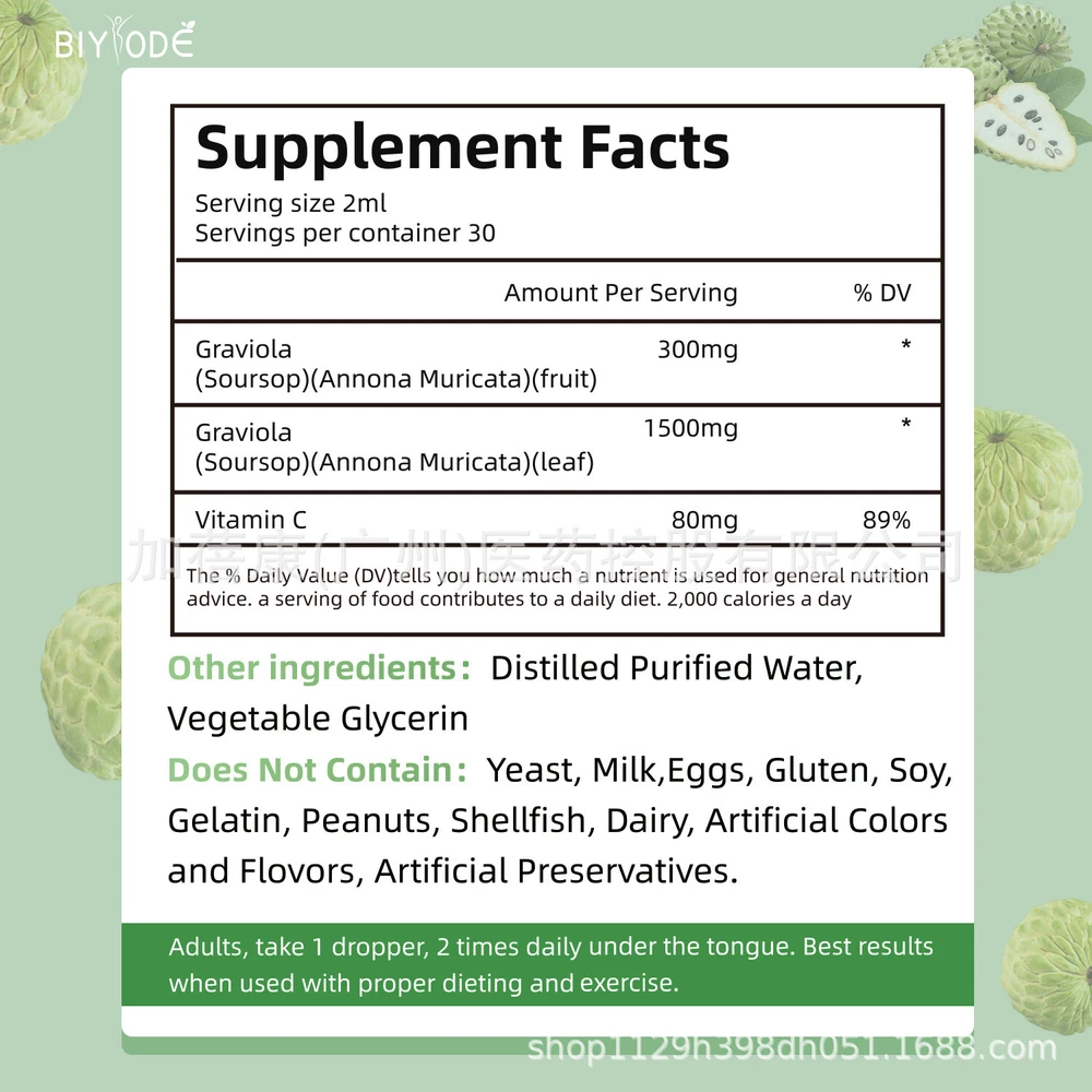 Natural Soursop Drops Vegetarian Supplement Pure Extract 60ml Health Benefits