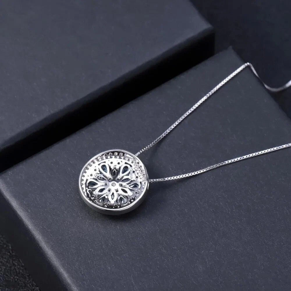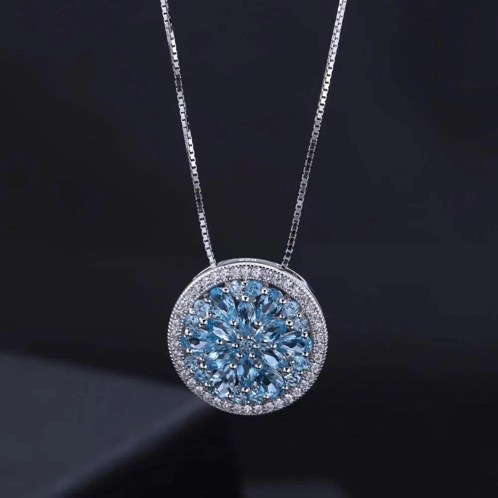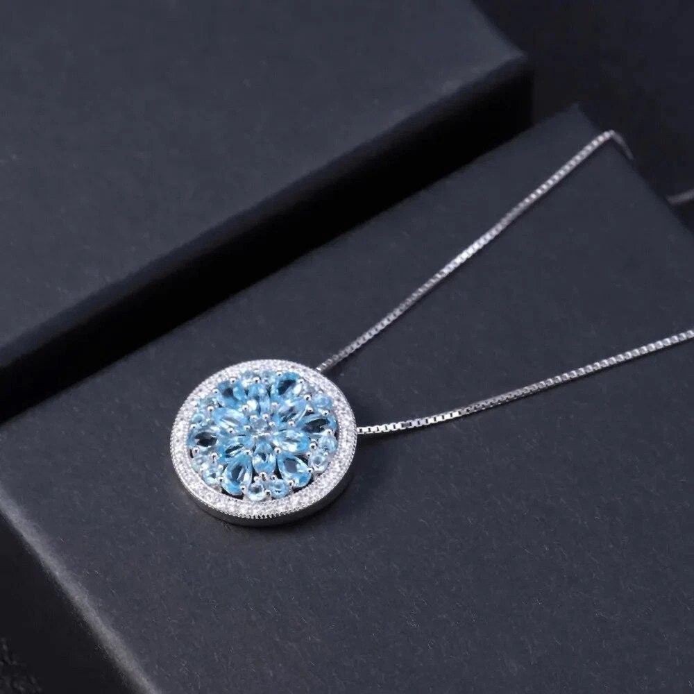Natural Swiss Blue Topaz Pendant 925 Sterling Silver Round Necklace for Women