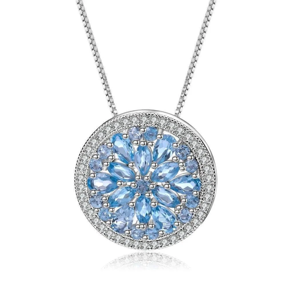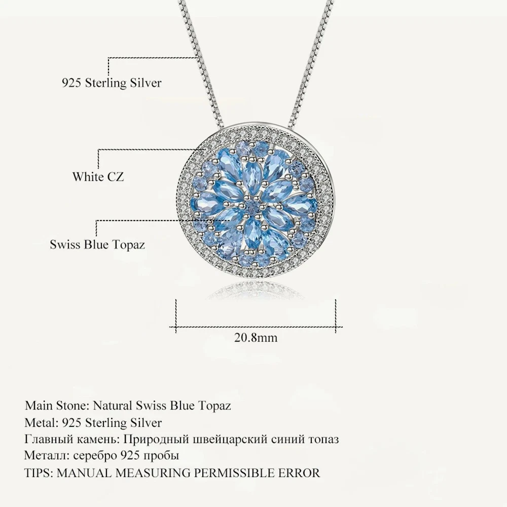 HomeNatural Swiss Blue Topaz Pendant 925 Sterling Silver Round Necklace for Women