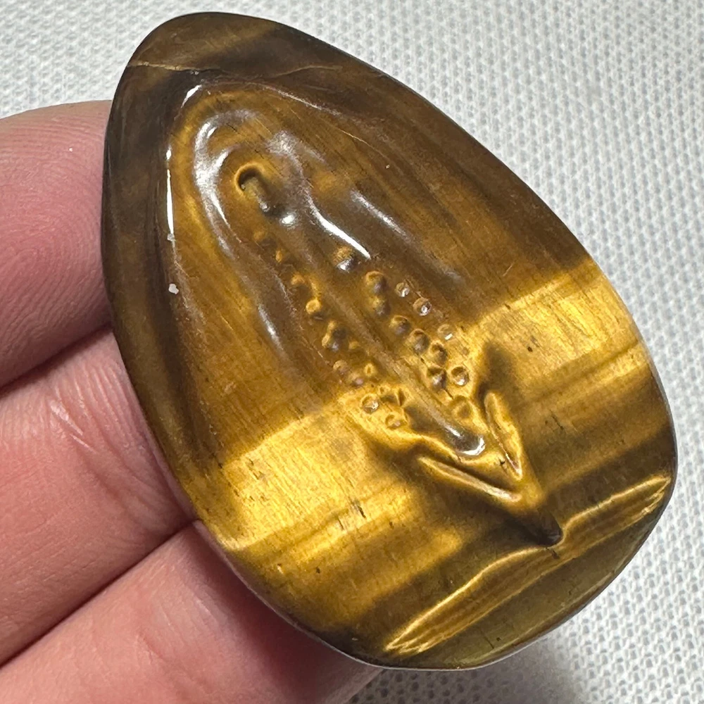 1. This unique Tiger Eye skull is stunning! The detailed carving and natural crystal shine make it a powerful piece for healing or display. The craftsmanship is impressive, and it arrived quickly, well-packaged. Perfect for collectors or spiritual use—love the earthy energy it brings! Highly recommend for anyone drawn to mystical, handcrafted art.