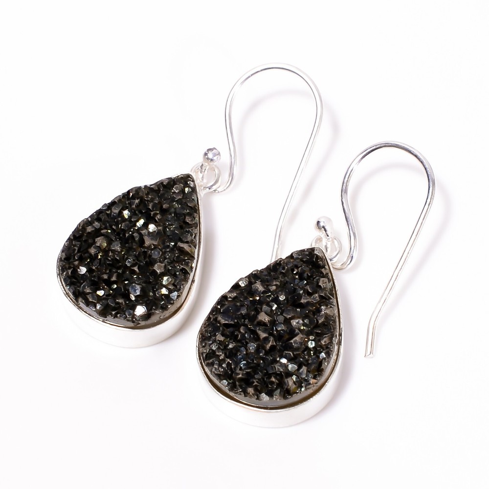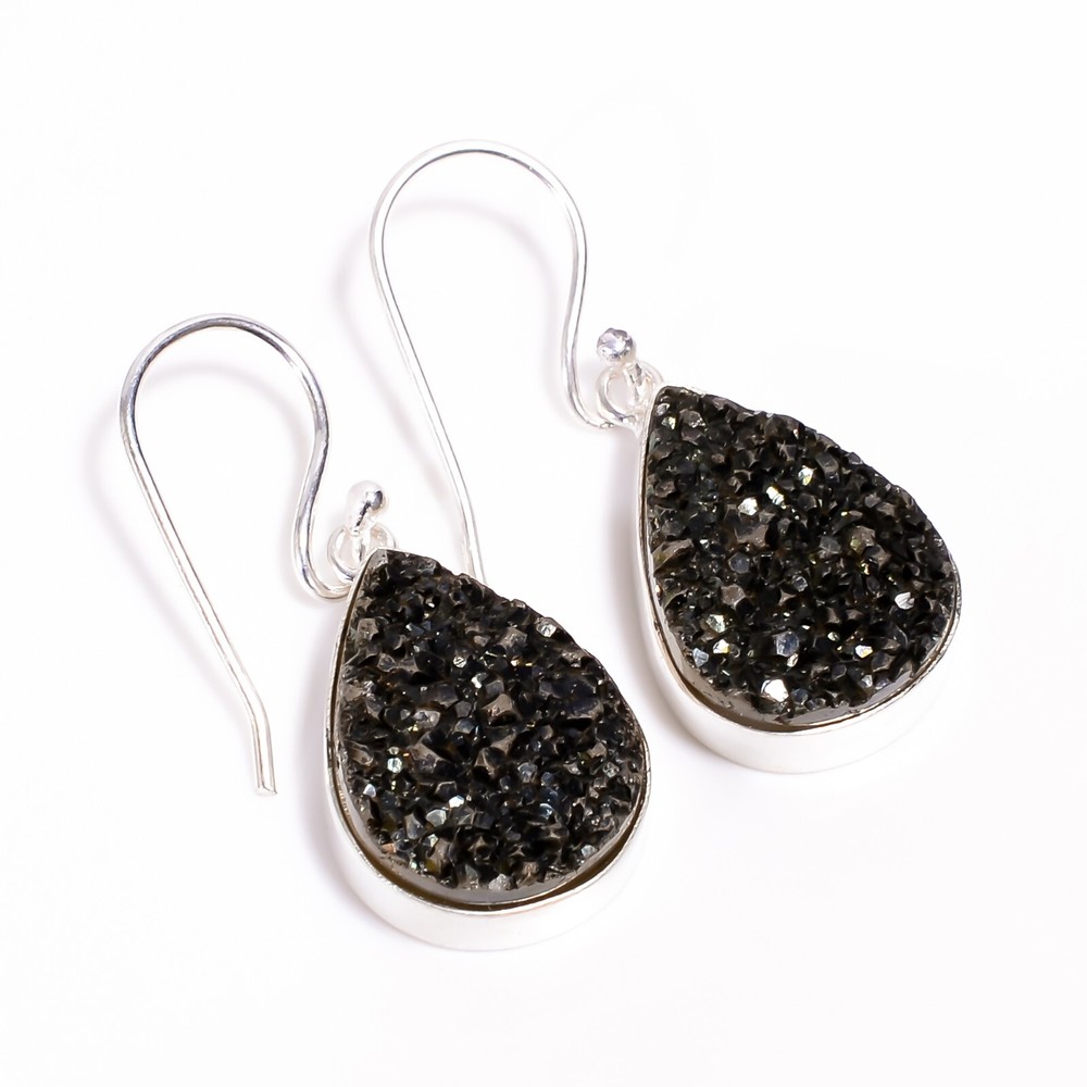 Welcome to Jaipur Silver Gallery Natural Titanium Druzy Drop/Dangle Dailywear Earrings 925 Silver For Girls Handmade Earrings, Sterling Silver Earrings, Titanium Druzy Earrings, Handcrafted Earrings SKU : - UKE-1989 Gemstone : - Titanium Druzy Stone Shape : - Pear Metal : - Sterling Silver Metal Purity : - 925 Earring Length : 1.6 Inches Earring Width : Inches _______________________________________________________________________________________ Amazing Properties of Silver ****************************** Tough and Long-lasting: Silver is incredibly strong, built to withstand daily wear and tear as well as tough environmental conditions. Easy to Shape and Design: Silver is like clay for skilled craftsmen, allowing them to create beautiful and intricate designs effortlessly. Great at Conducting Energy: When it comes to heat and electricity, silver is the go-to. It can quickly and efficiently transfer energy, making it ideal for various applications. Keeps Things Clean and Safe: Silver has a natural ability to keep harmful bacteria at bay, making it a reliable choice for promoting cleanliness and well-being. 3 Underrated Benefits Of Silver ****************************** Gorgeous Charm: Silver jewelry shines brightly, enhancing any outfit and fitting everyone's style with ease. Gentle on Skin: Silver is kind to your skin, reducing the chance of allergies and making it a favorite choice for accessories. Healing Vibes: Some believe silver jewelry has a soothing touch, possibly aiding in easing issues like arthritis, anxiety, and the blues. _______________________________________________________________________________________ For Mother's Day Gift For Father's Day Gift For Promise For Valentine' Day For Halloween Party For Christmas Day Gift For New Year Party For Mom For Her _______________________________________________________________________________________ If you need more help or want design tips, just give us a shout! We're lightning-fast in getting back to you. Every single thing we create is made by hand in our special workshop, and we put a whole lot of love and care into every piece. Thank you for stopping by! We're confident you'll have an amazing time shopping with us. We're here to make sure every moment you spend with us is filled with delight and satisfaction. Happy shopping!