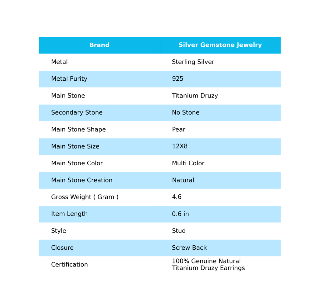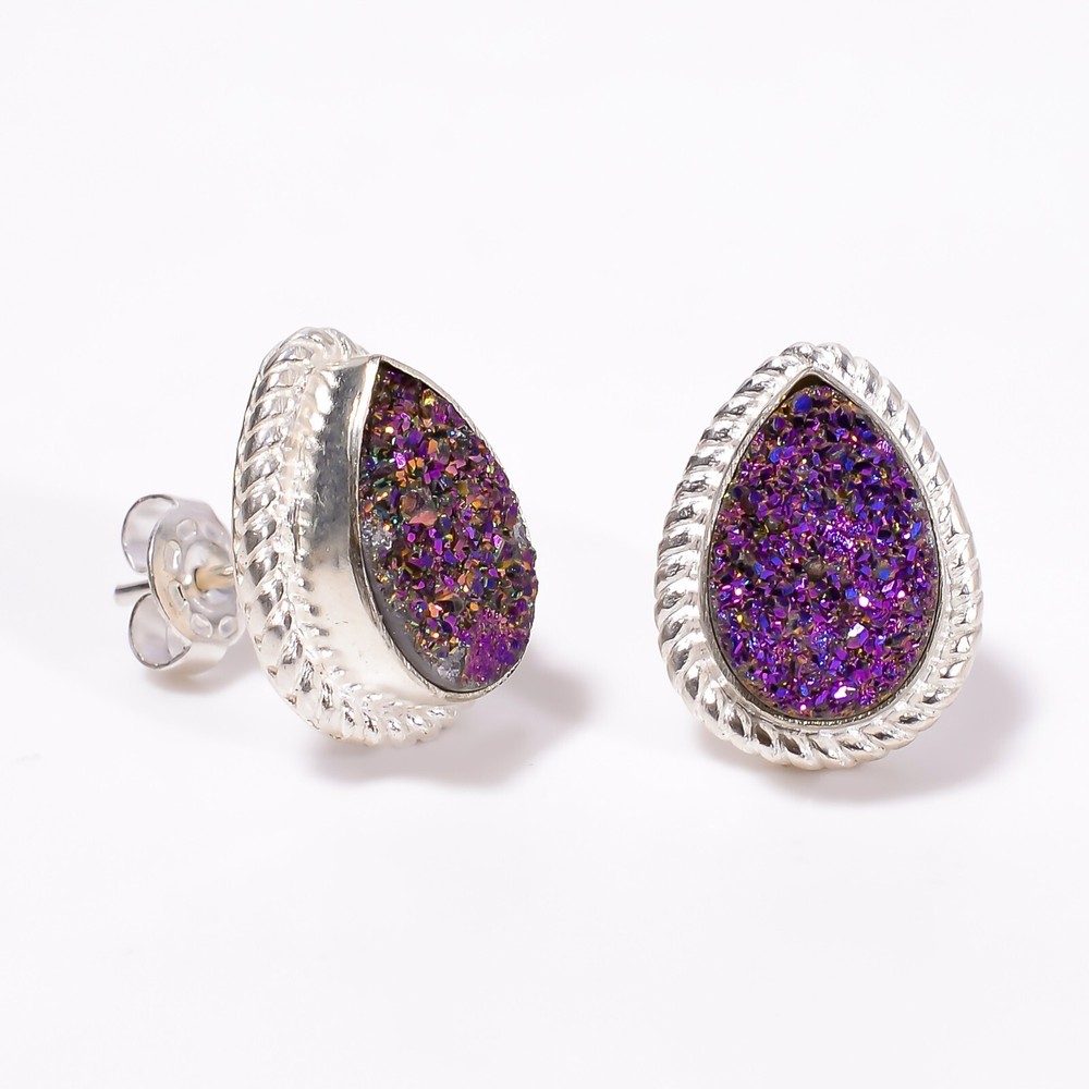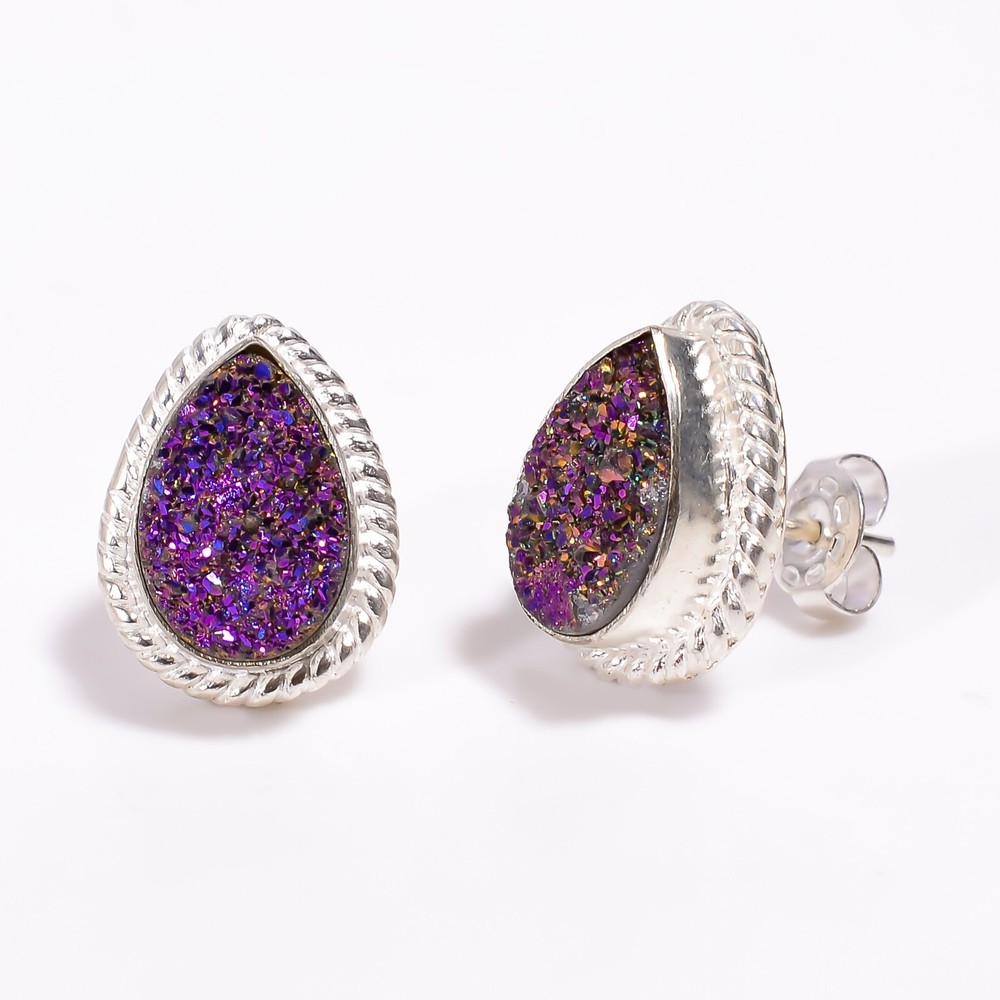 Welcome to Jaipur Silver Gallery Natural Titanium Druzy Gemstone 925 Silver Stud Minimalist Earrings For Women Handmade Earrings, Sterling Silver Earrings, Titanium Druzy Earrings, Handcrafted Earrings SKU : - UKE-2030 Gemstone : - Titanium Druzy Stone Shape : - Pear Metal : - Sterling Silver Metal Purity : - 925 Earring Length : 0.6 Inches Earring Width : Inches _______________________________________________________________________________________ Amazing Properties of Silver ****************************** Tough and Long-lasting: Silver is incredibly strong, built to withstand daily wear and tear as well as tough environmental conditions. Easy to Shape and Design: Silver is like clay for skilled craftsmen, allowing them to create beautiful and intricate designs effortlessly. Great at Conducting Energy: When it comes to heat and electricity, silver is the go-to. It can quickly and efficiently transfer energy, making it ideal for various applications. Keeps Things Clean and Safe: Silver has a natural ability to keep harmful bacteria at bay, making it a reliable choice for promoting cleanliness and well-being. 3 Underrated Benefits Of Silver ****************************** Gorgeous Charm: Silver jewelry shines brightly, enhancing any outfit and fitting everyone's style with ease. Gentle on Skin: Silver is kind to your skin, reducing the chance of allergies and making it a favorite choice for accessories. Healing Vibes: Some believe silver jewelry has a soothing touch, possibly aiding in easing issues like arthritis, anxiety, and the blues. _______________________________________________________________________________________ For Mother's Day Gift For Father's Day Gift For Promise For Valentine' Day For Halloween Party For Christmas Day Gift For New Year Party For Mom For Her _______________________________________________________________________________________ If you need more help or want design tips, just give us a shout! We're lightning-fast in getting back to you. Every single thing we create is made by hand in our special workshop, and we put a whole lot of love and care into every piece. Thank you for stopping by! We're confident you'll have an amazing time shopping with us. We're here to make sure every moment you spend with us is filled with delight and satisfaction. Happy shopping!