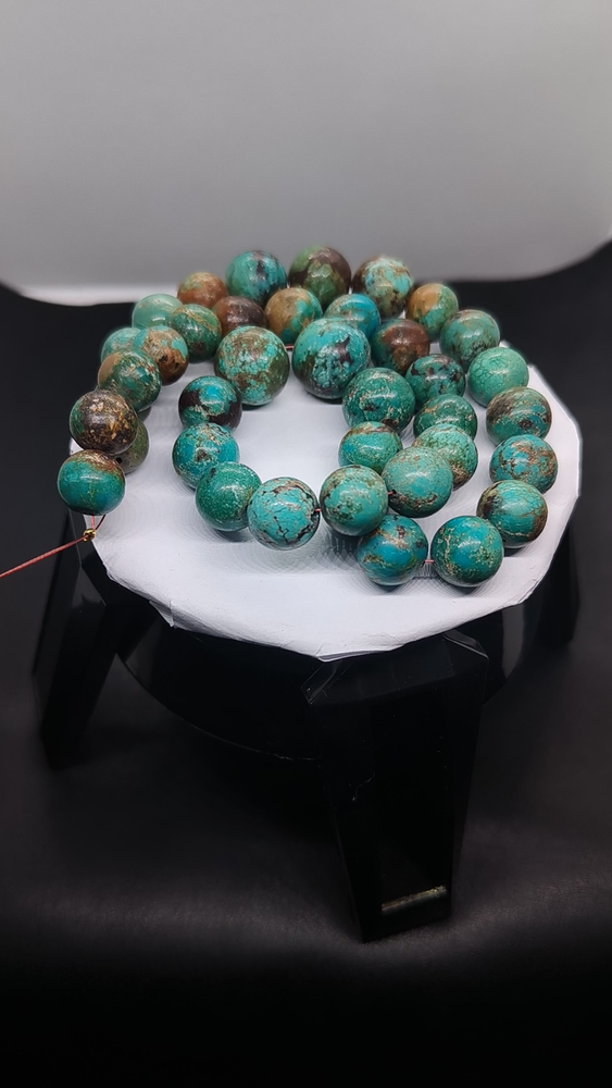 Elevate your jewelry creations with our Natural Turquoise Round Shape Beads, offered in a generous 16-inch strand. Each bead showcases the authentic beauty of turquoise, with a serene blue hue that complements a variety of styles, from antique to contemporary. The oval gemstones are transparent, allowing light to pass through and reflect off their smooth, round surfaces, creating a mesmerizing effect. Crafted with care in India, these beads are a testament to the skilled artisanship that Beyond Beautiful Boutique is known for. The strand's length of 10/15MM stones totals 360 carats of premium, high-quality turquoise, ready to be the centerpiece of your next project or to enhance an existing collection.