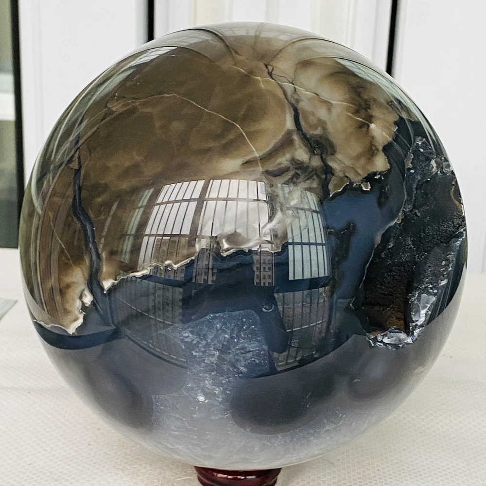 Natural Volcanic Agate Crystal Sphere 6120G UV Reactive Healing Stone