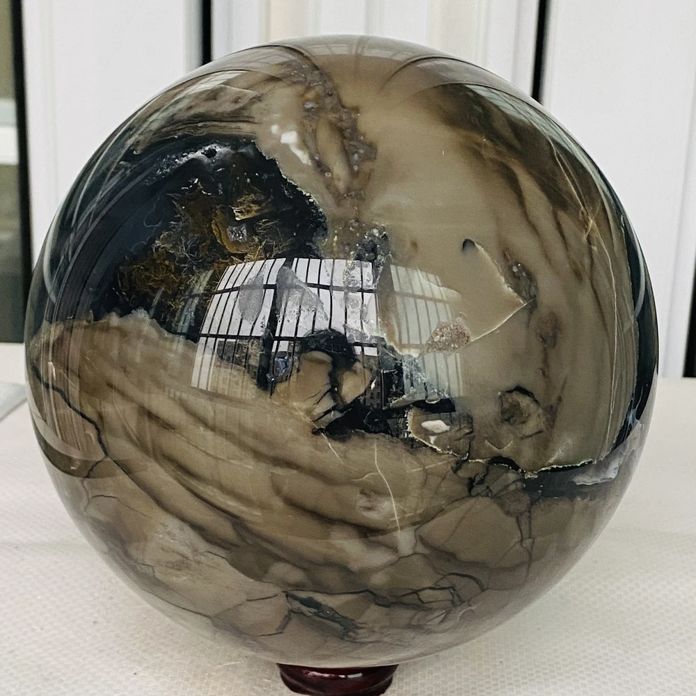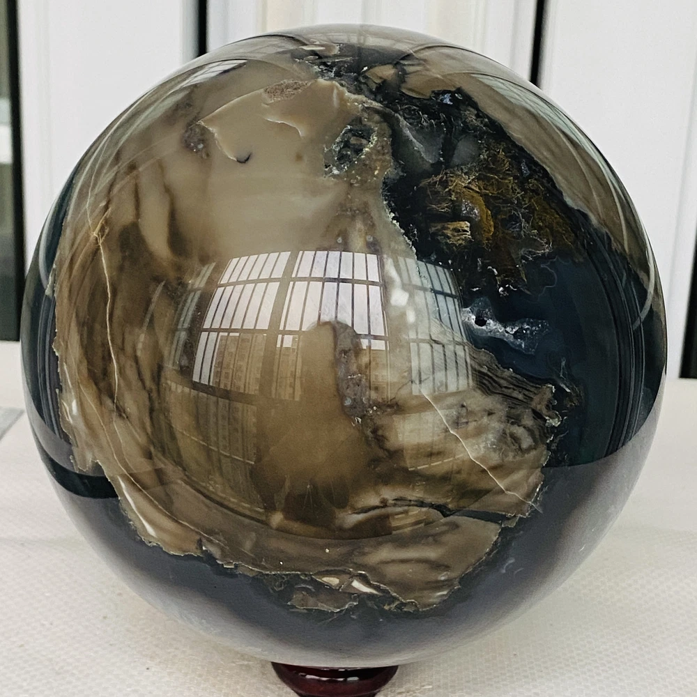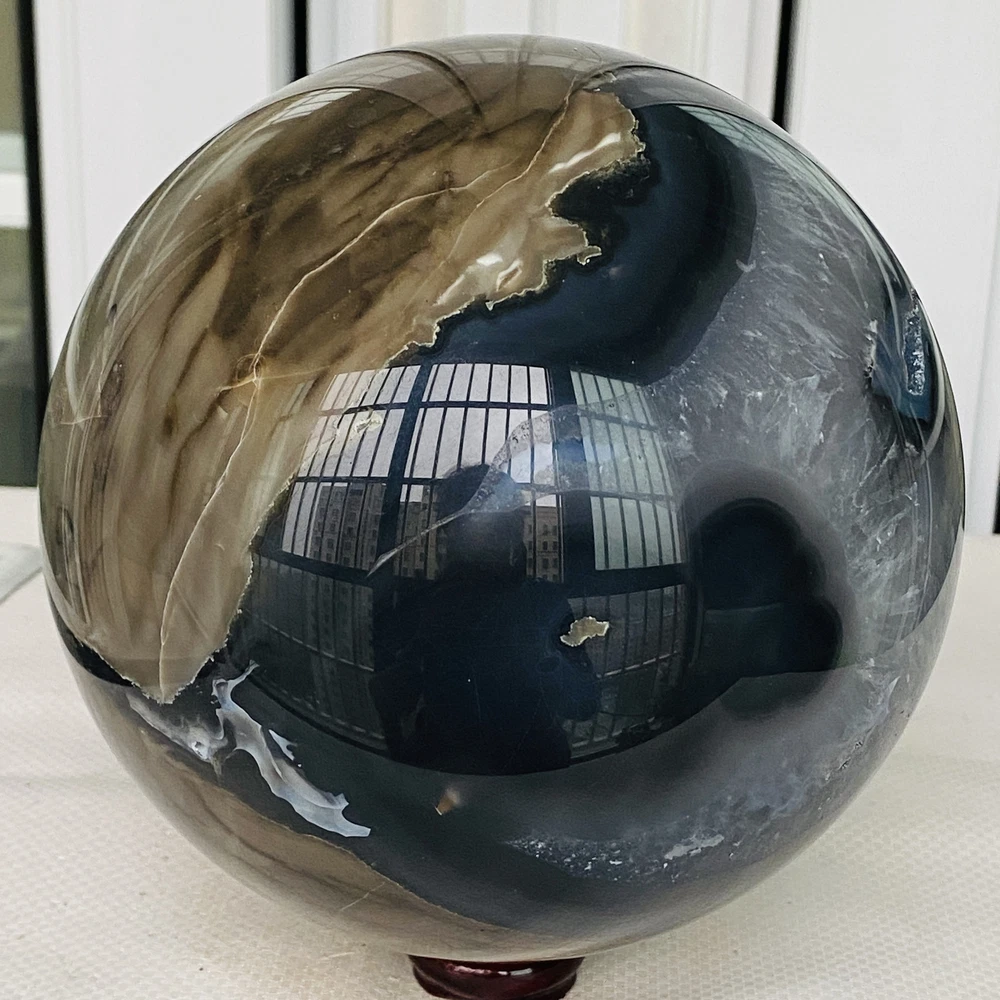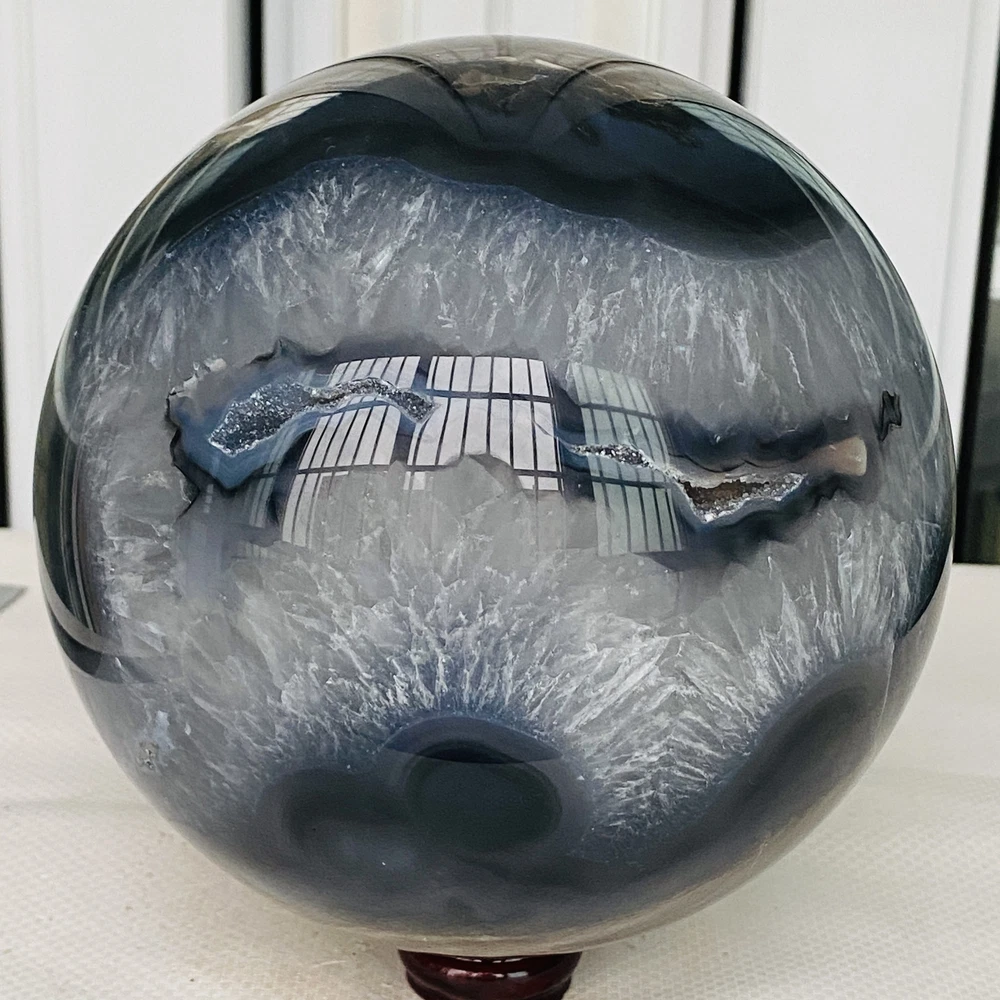Natural Volcanic Agate Crystal Sphere 3140G UV Reactive Healing Stone