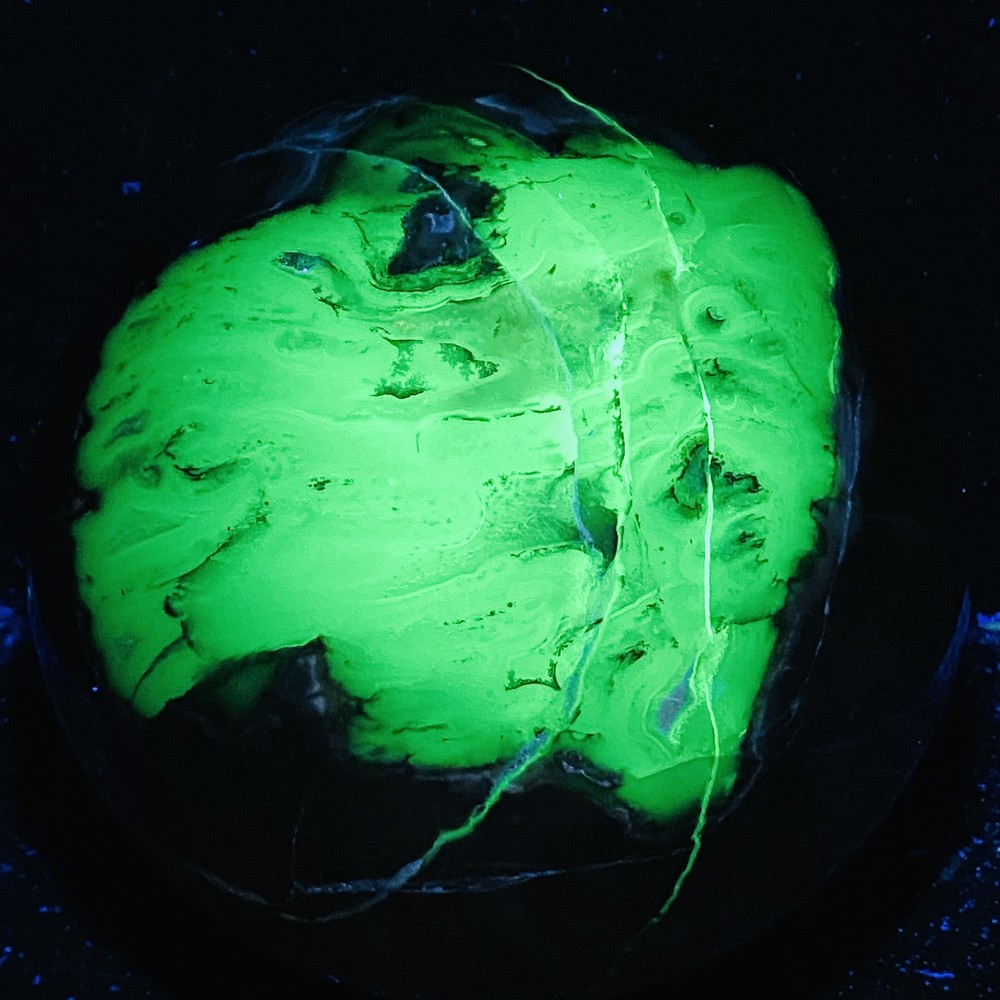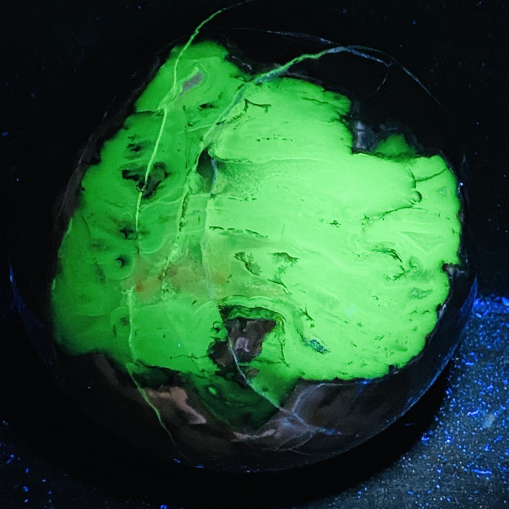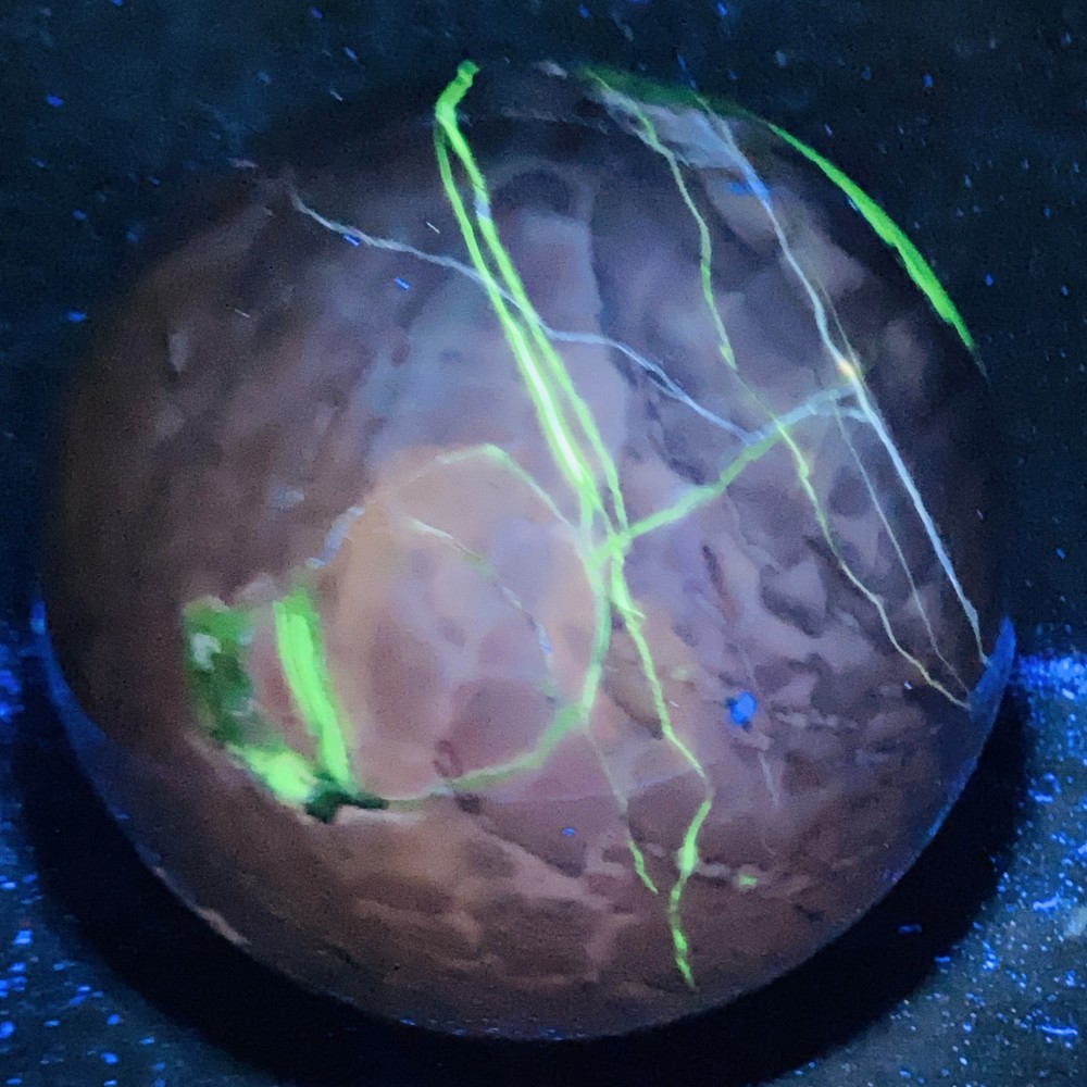 Natural Flame UV-reactive 4420G stone sphere for reiki healing