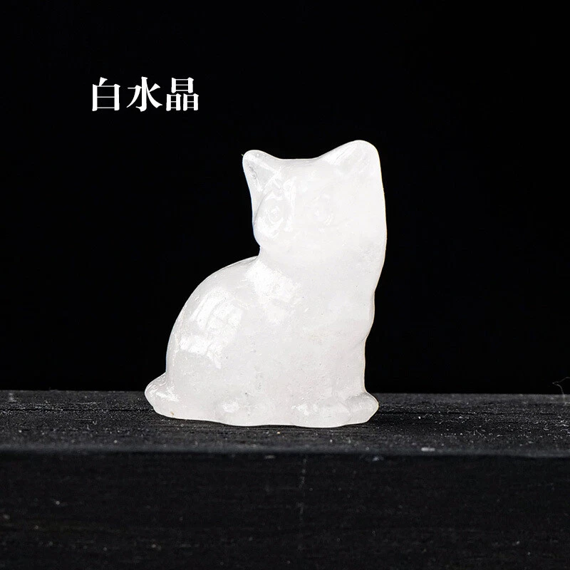 Natural White Crystal Raw Quartz Crystal Carving Kitten Statue Healing Energy