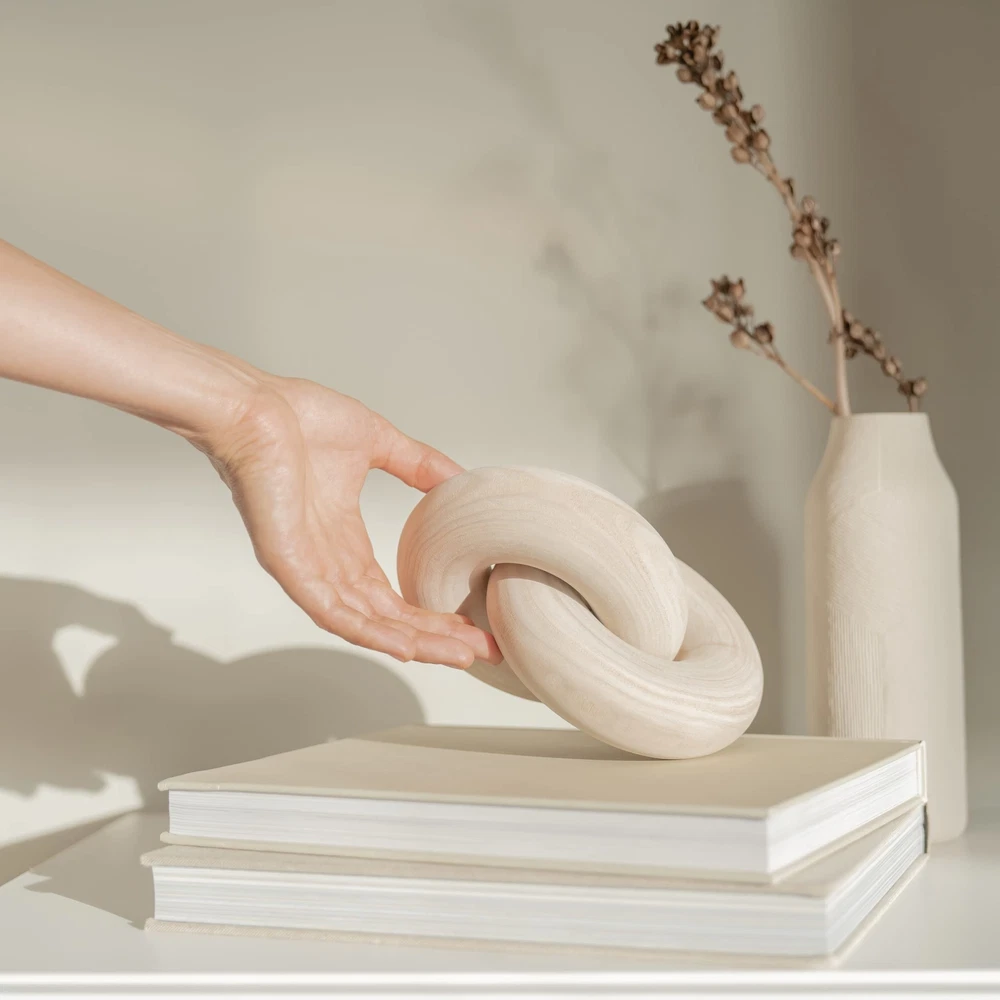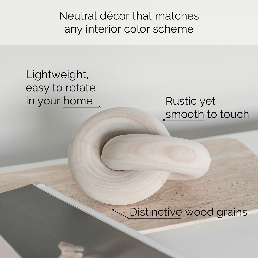 Wood Knot Decor Natural - Coffee Table Sculpture, Wood Chain Link Decor, Decorative Chain, Wooden Knot, Console Table Decoration Items, Shelf Decorations, Bookshelf Decorative Objects, Beige 💡 Need to style your COFFEE TABLE? Looking to accent your SHELVES? Trying to elevate your favorite space? Impress your guests with home decorations for living room. 📷 SHELFIE READY in minutes - stack your wooden knot decor on coffee table books, add decorative beads, rustic vessels, wood chain link decor, candles and other accessories. For refreshing vibes, rotate your decor from one room to another! 🌳IN YOUR HOME FOR YEARS - made from solid paulownia wood that offers distinctively beautiful wood grains. Add a durable and earthy statement piece to your entryway, console table, tabletop or fireplace decor. ❤️CHEER UP your loved ones with timeless HOUSEWARMING GIFT - give this neutral home decor to new homeowners with moody or light & bright interior. They will love this wood decor packed in gift-ready box.🎁 ⚠️PLEASE READ - Wood Knot Size Length 7.1 inch (18 cm), Width 5.1 inch (13cm), Link Thickness 1.5 inch (4cm). Each wood knot is designed by nature, slight variations in color and markings occur naturally. wood knot makes versatile desk decorations, entryway decor, wood chain link decor, minimalistic decor, modern home decor and decor for shelves. Handcrafted from solid paulownia wood, these natural color pieces are warm home décor accents that never go out of style. While your decor may change with seasons, this wood knot remains your must-have living room table decoration all year round! Shipping We offer FREE shipping on all orders! We ship within Three business days of payment, usually sooner. We use a selection of shipping services such as UPS, FedEx, USPS etc. We only ship to the lower 48 states, no APO/FPO addresses or PO Boxes allowed. Local pickups and combined shipping options are not provided at this time. International buyers – please note: Import duties, taxes, and charges aren't included in the item price or postage cost. These charges are the buyer's responsibility. Please check with your country's customs office to determine what these additional costs will be prior to bidding or buying. Order Cancellation Policy * Order Cancellation Policy ** You can return a product for up to 30 days from the date you purchased it. 1. The seller reserves the right to cancel the special case only due to eBay cancellation fee. 2. The decision of seller is the final. 3. The seller will respond to the cancellation request within 2 business days. Please wait for the result of cancellation. 4. In case the cancellation is not completed by some reasons, the buyer can follow the options below to get the refund. 4.1 The buyer can reject the item when it arrives. 4.2 The buyer can send the item back to the seller within 30 days If the buyer receives item (USA Shipment ONLY). The seller will provide the FREE return label to the buyer when the buyer opens " Return Item" case on eBay by using the reason as "Change my mind" ONLY. 5. When buyer has placed the order. The order will be processed and completed by automatic warehouse system within 5 minutes. In case that buyer sends the cancellation request after 5 minutes of placing the order, the request will be rejected. **Sending direct message to cancel the order is not allowed for every case.* Return Policy - If buyer would like to return the items for refund or replacement, please CONTACT SELLER to receive the free return label from seller. The refund or replacement will be processed with the tracking number of return label which is provided by seller only. The other ways of return which are not approved by seller will not be processed for the refund or replacement. Return You can return a product for up to 30 days from the date you purchased it. Any product you return must be in the same condition you received it and in the original packaging. Please keep the receipt. Payment We accept payment by any of the following methods: eBay Payments Please pay as soon as possible after winning an auction, as that will allow us to post your item to you sooner! Feedback Customer satisfaction is very important to us. If you have any problem with your order, please contact us and we will do our best to make you satisfied. Contact Us If you have any queries, please contact us via ebay. We usually respond within 24 hours on weekdays. Please visit our eBay store to check out other items for sale! Thank you for shopping at our store.