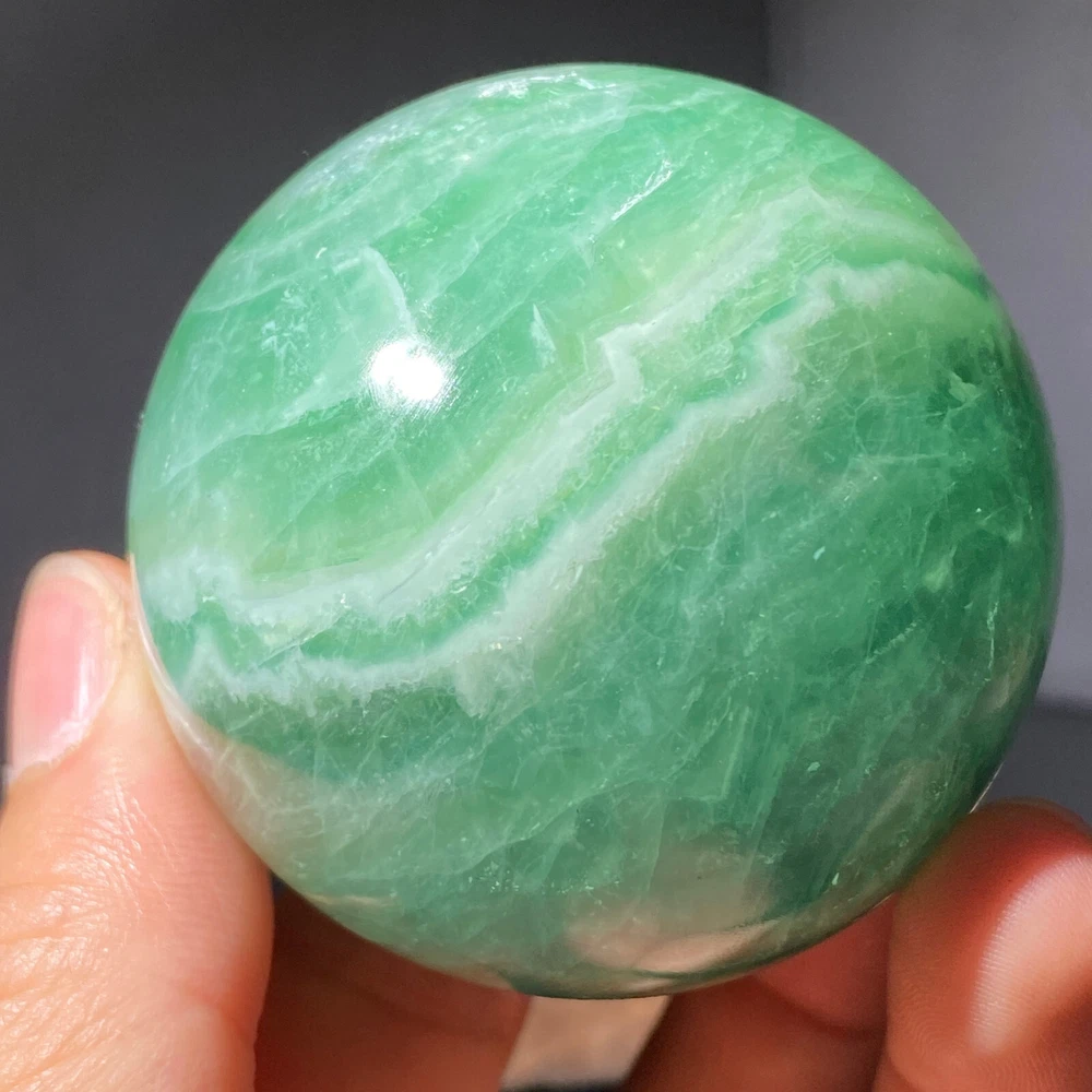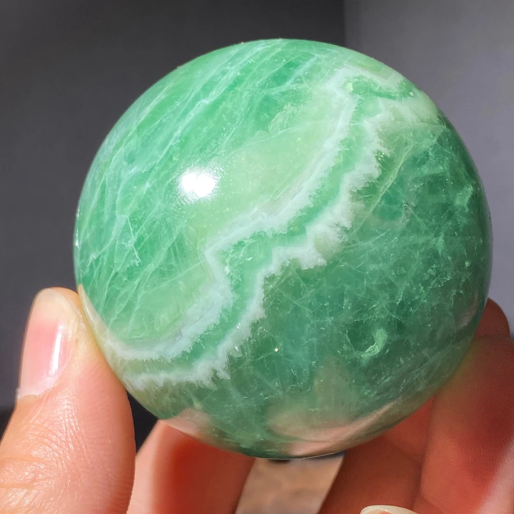 Received exact sphere pictured and described in the listing. An excellent, cleanly shaped stone with a good finish polish. Colors are bold and bright. Even better in hand, than it appeared in its listing photos. Communication with the shop was good. Shipping time from mainland China very acceptable, in light of the distance traveled. Sphere was delivered in good order and perfect condition. Well pleased with my blue/green Turquoise sphere. Good job by this eBay seller.