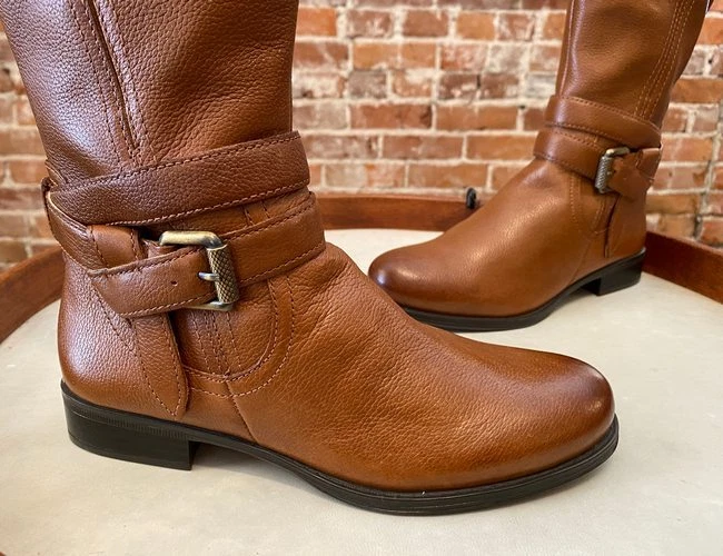 Naturalizer Banana Tan Brown Leather Jordan Medium Calf Riding Boot 6.5 New Description Naturalizer Boots A tall riding boot gives you endless style-ability. Rustic yet refined, this classic zips up the side for ease, while buckled straps add an equestrian touch. From Naturalizer. The features are: Brand new Upper: Leather or suede Design: Tall riding boot with buckled straps, stud detail and elastic gore Closure: Full inside shaft zipper Toe Type: Closed, round Hardware: Antiqued metal Lining: Manmade fabric upper; manmade sock Insole: Padded Sole: Treaded rubber Back Heel Height: Approx. 1"H stacked-look Shaft: Approx. 15.5"H with a 13.75" leg opening Be sure to check out our EBAY STORE. Enjoy! Payment, Shipping & Return Information U.S. Buyers to pay shipping and handling of 9.95 for 1st item. For each additional item add 6.95 . For shipping discount to apply, all items need to paid in one combined payment. Missouri Residents to pay Sales Tax Items may returned in original condition for a refund of the purchase price. Shipping costs will not be refunded, unless an error was made by us. International Shipping rates: Canada via 1st class international: 17.95 Worldwide via 1st class international: 32.95 For Multiple item shipping discounts, Priority Mail or Express Mail International please contact me for a shipping Quote International Buyers - Please note: Import duties, taxes and charges are not included in the item price or shipping charges. These charges are the buyer's responsibility. Please check with your country's customs office to determine what these additional costs will be prior to bidding/buying. Due to the USPS raising international shipping costs, I may have to package without the shoeboxes for some International Shipments. We accept Paypal. Thanks for Looking.