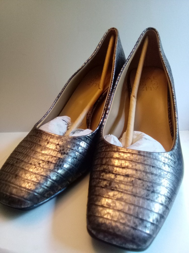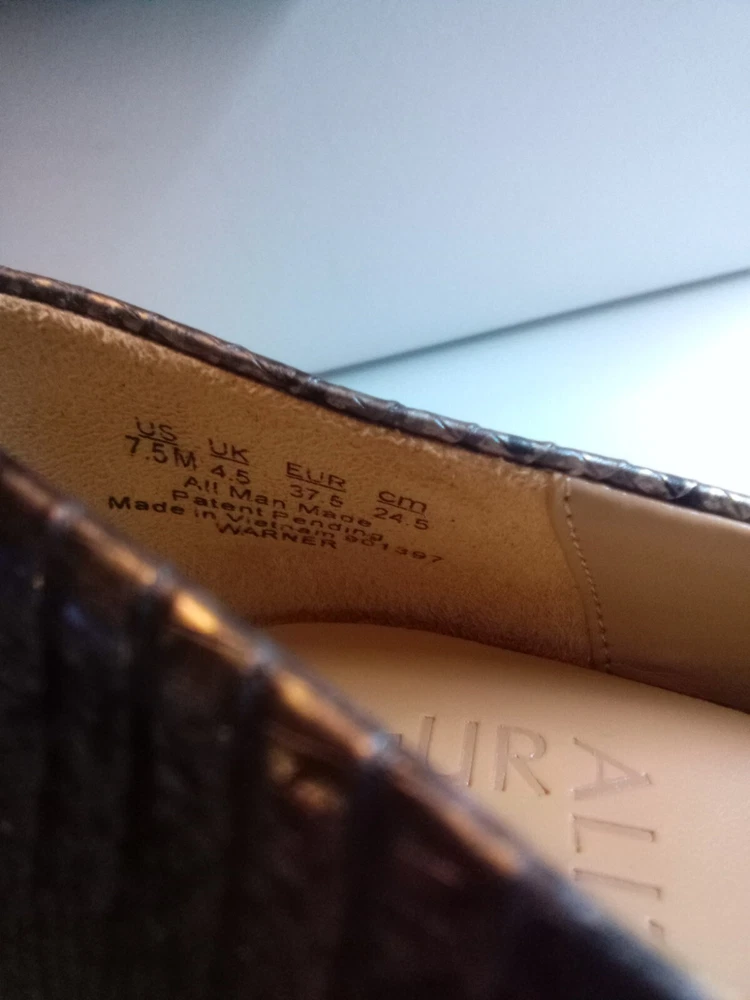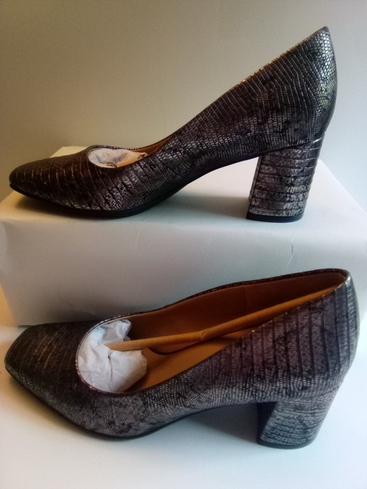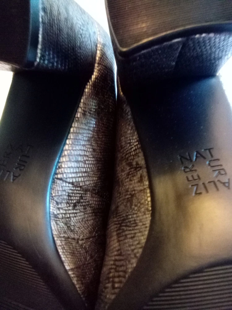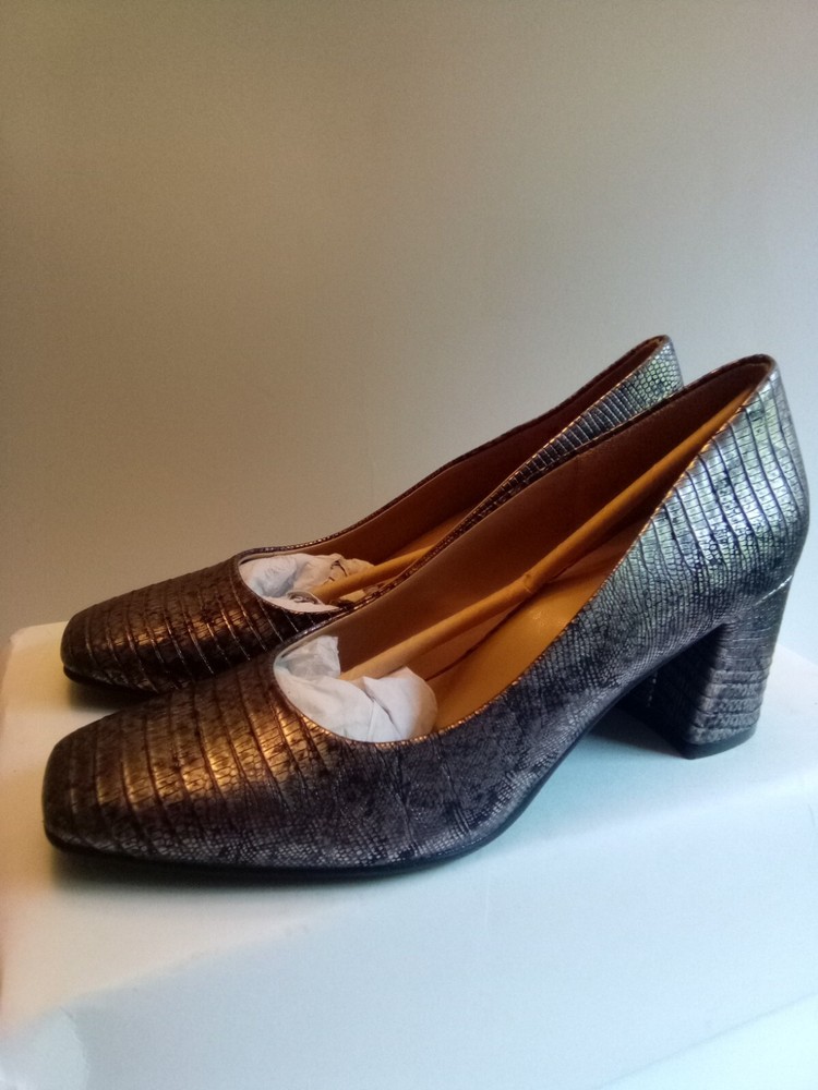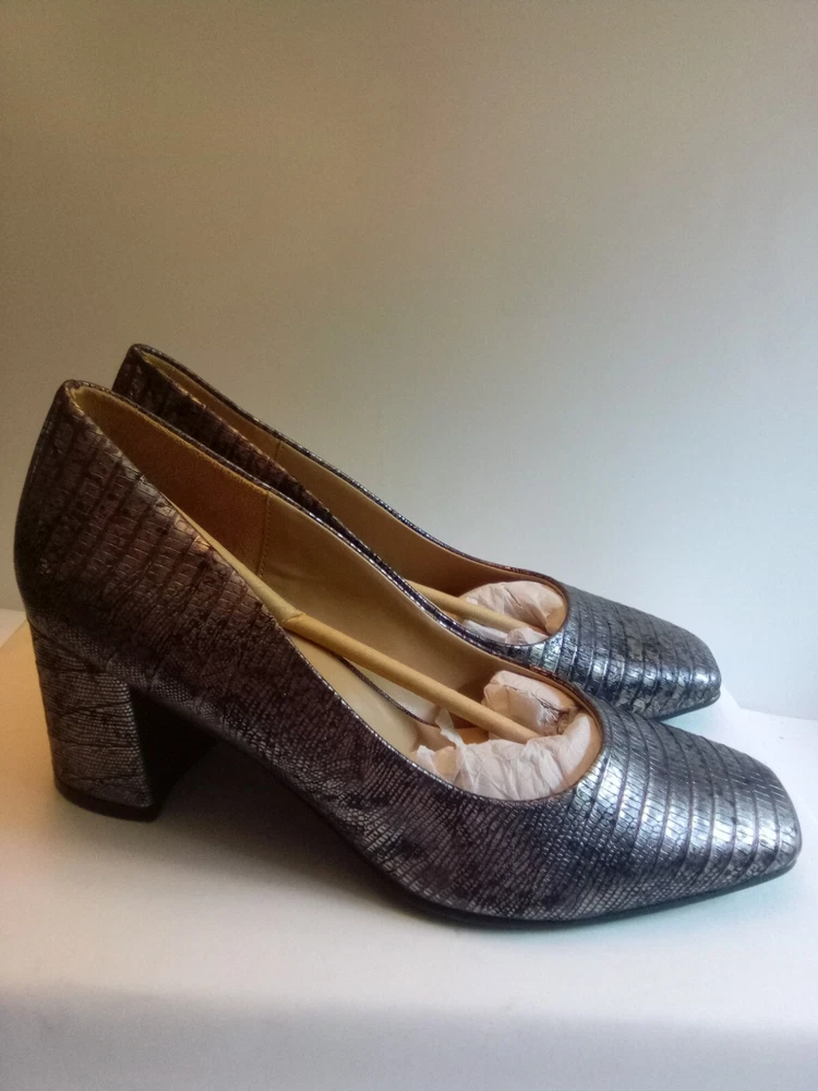 Elevate your style with these chic Naturalizer Warner heels. The sleek pewter silver color adds a touch of elegance to any outfit. With a comfortable block heel and slip on design, these D'Orsay style heels are perfect for a night out or a day at the office. Featuring a square toe shape and croc pattern, these heels are sure to turn heads. Available in US shoe size 7.5 and EU shoe size 37.5, they are made with man-made upper material and crafted in Vietnam. Don't miss out on adding these stunning heels to your collection.
