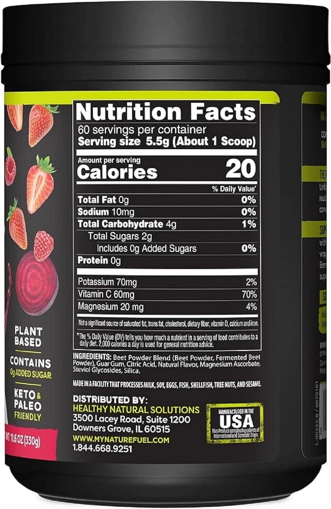 Nature Fuel Power Beets Powder, Delicious Acai Berry Pomegranate, Concentrated Superfood Supplement, Supports Circulation, Natural Energy & Stamina, Non-GMO, 60 Servings ATHLETIC ENDURANCE SUPPLEMENT: Our Power Beets Powder is the perfect, natural pre workout supplement! Try mixing with a glass of water 30 minutes before your workout to activate nitric oxide within your body. Product Note: Exposure to heat or sunlight may lead to melting/damage of product. Hence customers are expected to be available during the product delivery NATURAL ENERGY BOOST: With a concentrated blend of 6 whole beets, our Power Beets Powder provides a natural boost of energy by delivering more oxygen to your muscles and supports increased circulation and blood flow to all parts of your body. Easy to mix with any beverage, It's the perfect new supplement to incorporate into your daily routine! ANTIOXIDANT SUPPORT: Our Power Beets Powder is an excellent source of antioxidants and nitric-oxide-boosting nutrients, which increase blood flow and oxygen delivery, relax blood vessels, lower high blood pressure, and improve overall cardiovascular health. GREAT TASTING: Bursting with a delicious acai berry pomegranate flavor , our Power Beets Powder is just as tasty as it is effective. VEGAN & GLUTEN FREE: Created with optimal nutrition in mind, our Power Beets Powder is Vegan, Gluten Free, Non-GMO and contain no Artifical Flavors, Colors, Sweeteners or Preservatives, making it the perfect dietary supplement regardless of the diet you follow! Get the Power of Healthy Delights Nature Fuel PowerBeets™ today! Healthy Delights Nature Fuel PowerBeets™ is a great tasting, nitrate-rich superfood that helps to boost your body’s production of Nitric Oxide, an essential molecule that helps to regulate healthy blood circulation.* Olympian’s Best Kept Secret For years, Olympic Athletes use the best keep secret – beet juice to get the performance edge! Beets are natural, safe, and proven to help increase the nitric oxide production in the body that helps boost circulation. Scientists and leading researchers around the world covet beets for their powerful health impact from anti-inflammatory response to supporting improved circulation.* Now you too can get the power of beets to work for you in an easy-to-use delicious way! Super Concentrated - Super Delicious - SuperFood You don’t have to use expensive beet shots, eat pounds of beets, or even try to stomach those horrible tasking beet powders anymore. With the mouth-watering delicious taste of acai berry pomegranate PowerBeets™ in a super-concentrated formula you’ll be ahead of the superfood game - fast! Super-concentrated PowerBeets™ has two times the servings versus the leading competitor and delivers a powerful punch. Boost your circulation, support your healthy blood pressure levels, and ignite your natural energy today with PowerBeets™*! * These statements have not been evaluated by the Food and Drug Administration. This product is not intended to diagnose, treat, cure or prevent any diseases. Shipping We offer FREE shipping on all orders! We ship within Three business days of payment, usually sooner. We use a selection of shipping services such as UPS, FedEx, USPS etc. We only ship to the lower 48 states, no APO/FPO addresses or PO Boxes allowed. Local pickups and combined shipping options are not provided at this time. Return You can return a product for up to 30 days from the date you purchased it. Any product you return must be in the same condition you received it and in the original packaging. Please keep the receipt. Payment We accept payment by any of the following methods: PayPal Please pay as soon as possible after winning an auction, as that will allow us to post your item to you sooner! Feedback Customer satisfaction is very important to us. If you have any problem with your order, please contact us and we will do our best to make you satisfied. Contact Us If you have any queries, please contact us via ebay. We usually respond within 24 hours on weekdays. Please visit our eBay store to check out other items for sale! Thank you for shopping at our store.