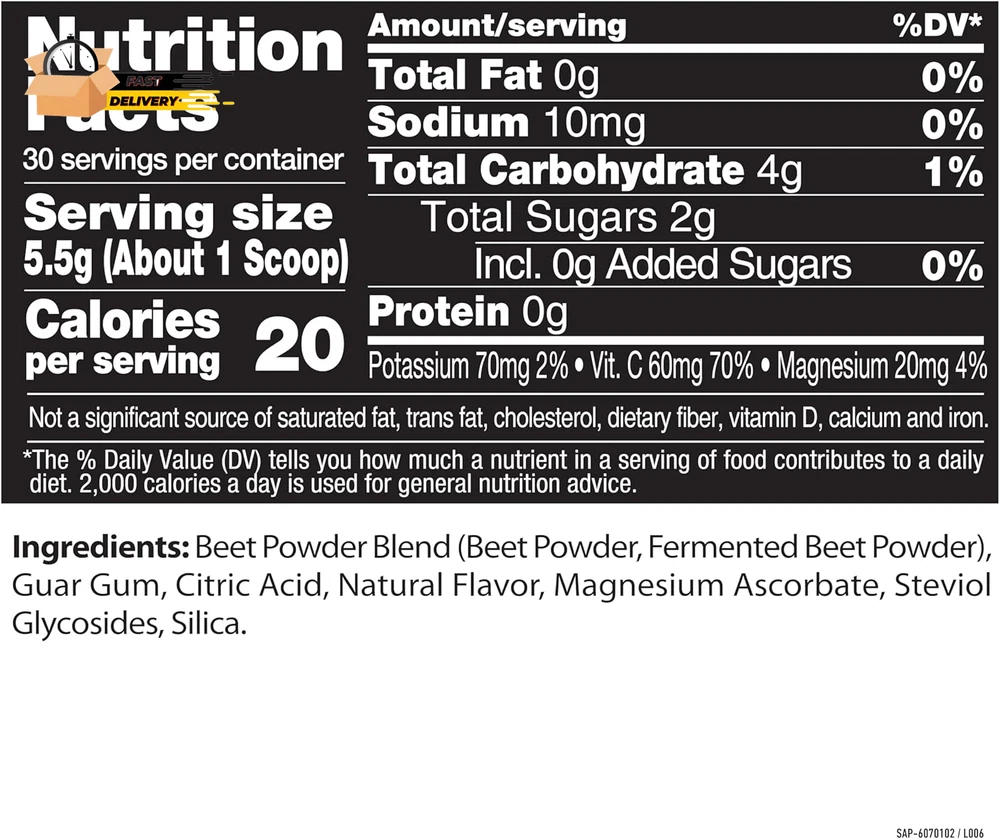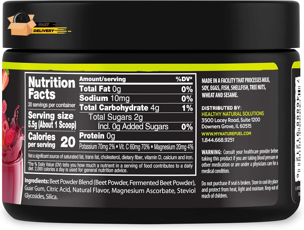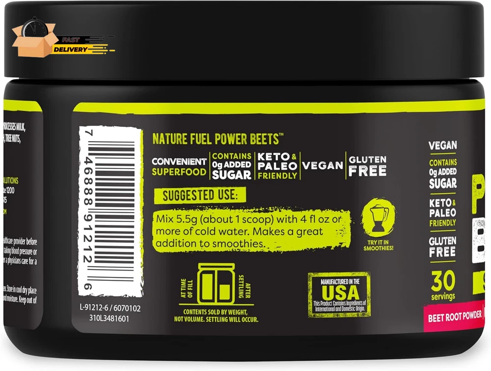Store New Arrivals Add to Favorite View Feedback Contact Nature Fuel Power Beets - Super Concentrated Non-Gmo Beet Juice Powder - Delici Description Unit Count 5.8 Ounce Item dimensions L x W x H 3.69 x 3.69 x 2.94 inches Product Dimensions 3.69 x 3.69 x 2.94 inches; 8 ounces Country of Origin USA Product Benefits Energy Management Item Weight 0.5 Pounds Special Ingredients Citric Acid Age Range (Description) Adult Diet Type Paleo, Keto, Gluten Free, Plant Based Flavor Mixed Berry Item Form Powder Size 30 Servings (Pack of 1) Promotes Improved Natural Energy and Improved Stamina* Supports Healthy Blood Pressure Levels*, is gluten-free, and made from non-GMO beets GREAT TASTING Mixed Berry Flavor made with no artificial flavors, colors or sweeteners Circulation Superfood: Boost Circulation by Activating Essential Nitric Oxide within your Body* Power Beets powder can be easily mixed into some of your favorite beet root drinks including juices, shakes, smoothies… and even great tasting on it’s own in water Discover the powerful benefits of delicious Healthy Delights® PowerBeets(TM) Juice Powder. It helps to support your body's production of Nitric Oxide, a miracle nutrient that can help to improve your cardiovascular system and give you natural energy before your workout*. For years, Olympic Athletes used the best kept secret – beet juice, to get the performance edge! Beets are natural, safe, and proven to help increase nitric oxide production in the body that helps support circulation*. Scientists and leading researchers around the world covet beets for their powerful health impact and support for healthy circulation.* Now you too can get the power of beets to work for you in an easy-to-use delicious way! You don’t have to use expensive beet shots, eat pounds of beets, or even try to stomach those horrible tasting beet powders anymore. With the mouth-watering delicious taste of acai-pomegranate Healthy Delights® Power Beets™ in a super-concentrated formula, you’ll be ahead of the superfood game - fast! Support your circulation, support your healthy blood pressure levels, and ignite your natural energy today with Power Beets™*! * These statements have not been evaluated by the Food and Drug Administration. This product is not intended to diagnose, treat, cure or prevent any diseases. ABOUT US We offer the best prices around on high quality products. Our E-store includes media such as books, movies, music and games while offering electronics, toys, sporting apparel, clothing, tools, general home, garden items and more. SHIPPING We are always working hard to ensure your package arrives as soon as possible. Please understand that some factors like weather, high postal traffic, and the performance of shipping companies are outside of our control. We offer free shipping to the lower 48 states and ship within 2 business days of payment, usually sooner. We do not accept P.O. Boxes. Please provide a physical address. For shipping outside of the continental USA, we only use eBay's Global Shipping Program.The item is shipped to KY and then sent to the rest of the world. International customers are responsible for all duties and taxes. Continue to check out in order to calculate costs for shipping the item to your country. Messages regarding eBay's Global Shipping Program MUST be directed at eBay EXCLUSIVELY. RETURNS We offer a 30-Day Return Policy on items which you are not completely satisfied with. You have the option for a full-refund or an exchange of the item. No returns are available on items shipped outside of the USA. PAYMENT We accept PayPal. CONTACT US This page content is yet to come Please ad us to your favorite seller and visit again later Thank You CUSTOMER SATISFACTION We try our very best to make sure every customer is completely satisfied. If there's a problem, message us! We're happy to help. WE ACCEPT Copyright © 2021 AutoDS. | All Rights Reserved