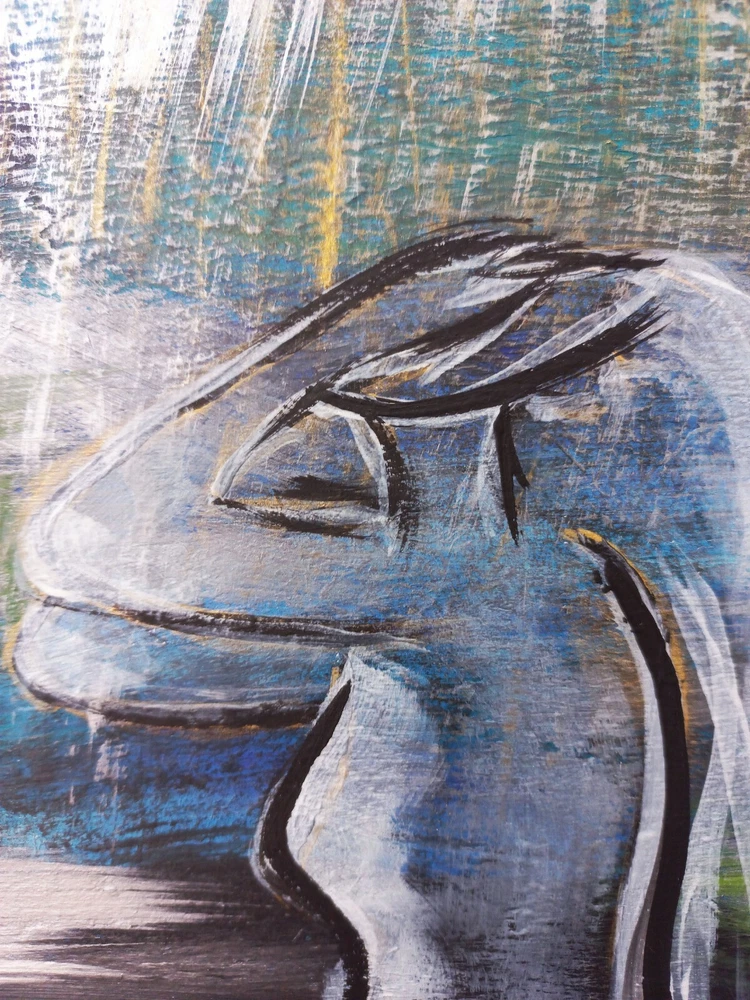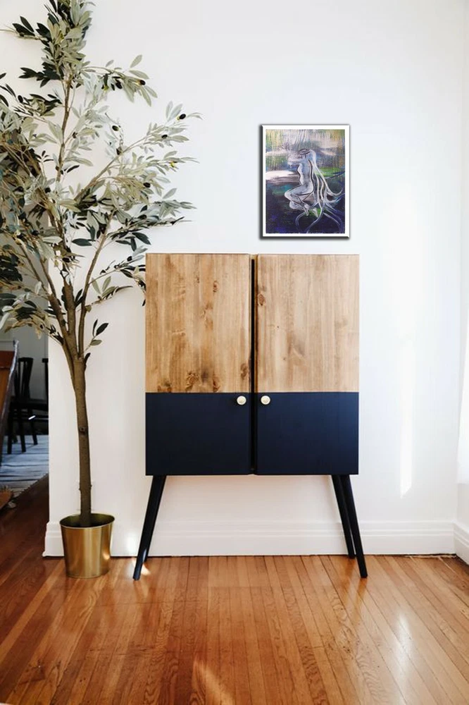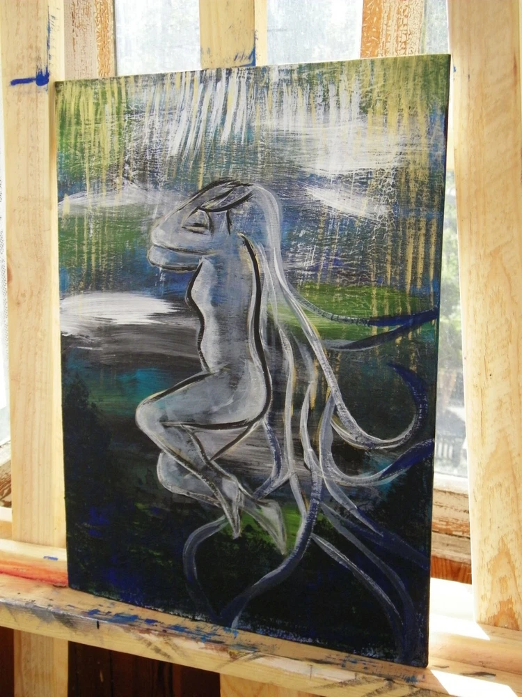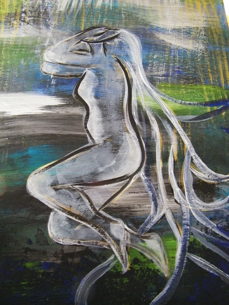 Hello art lovers! It brings me joy to present an abstract artwork that captures the essence of femininity interwoven with the serenity of nature’s hues. About the Painting: This original creation measures 16x12 inches (40x30 cm) and portrays a dreamlike female figure enveloped in calming tones of green, blue, and gold. Evoking a fusion of fantasy and natural beauty, this piece invites you to step into an enchanting forest realm where the human form harmonizes with organic elements. Crafted with acrylic and enamel paints on hardboard and completed with a protective varnish, the painting radiates depth and vibrancy, offering a serene yet mysterious allure. Handmade Original: As a unique and signed original, this artwork ensures its individuality and authenticity. Its unframed edges give you the liberty to choose a frame that complements your interior, while the durable hardboard and varnish provide lasting quality. My signature further affirms its originality and the personal touch I bring to every piece. Perfect for: This painting is an excellent choice for enthusiasts of modern and abstract styles infused with a touch of fantasy. Whether adorning a living room, bedroom, or office, it will bring a sophisticated charm and serve as a captivating conversation starter for those drawn to nature-inspired art. A Note on Colors: Please keep in mind that colors may appear slightly different due to variations in screen settings.