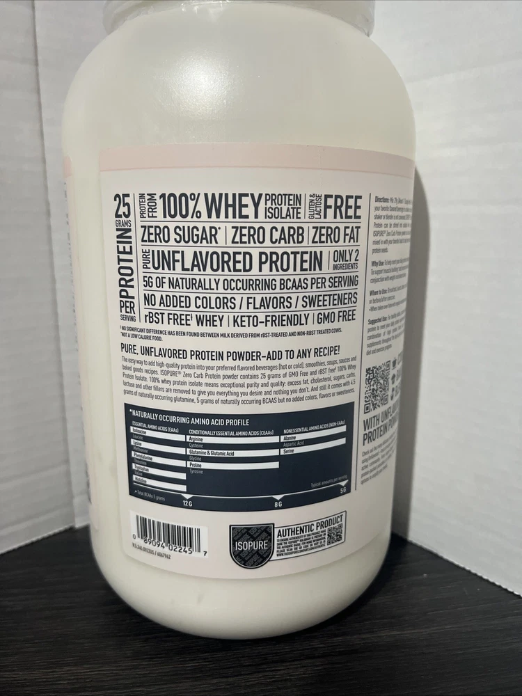 UPC:0089094022457Features:Zero CarbIngredients:ProteinCountry/Region of Manufacture:United StatesFlavor:UnflavoredBrand:IsopureSupply:1 Month and LongerDepartment:UnisexFormulation:Powdergtin13:0089094022457When to Take:Afternoon, After Workout, Before WorkoutMain Purpose:Gym & Training, BodybuildingActive Ingredients:Whey ProteinItem Weight:55.60 ozExpiration Date:August 12,2026