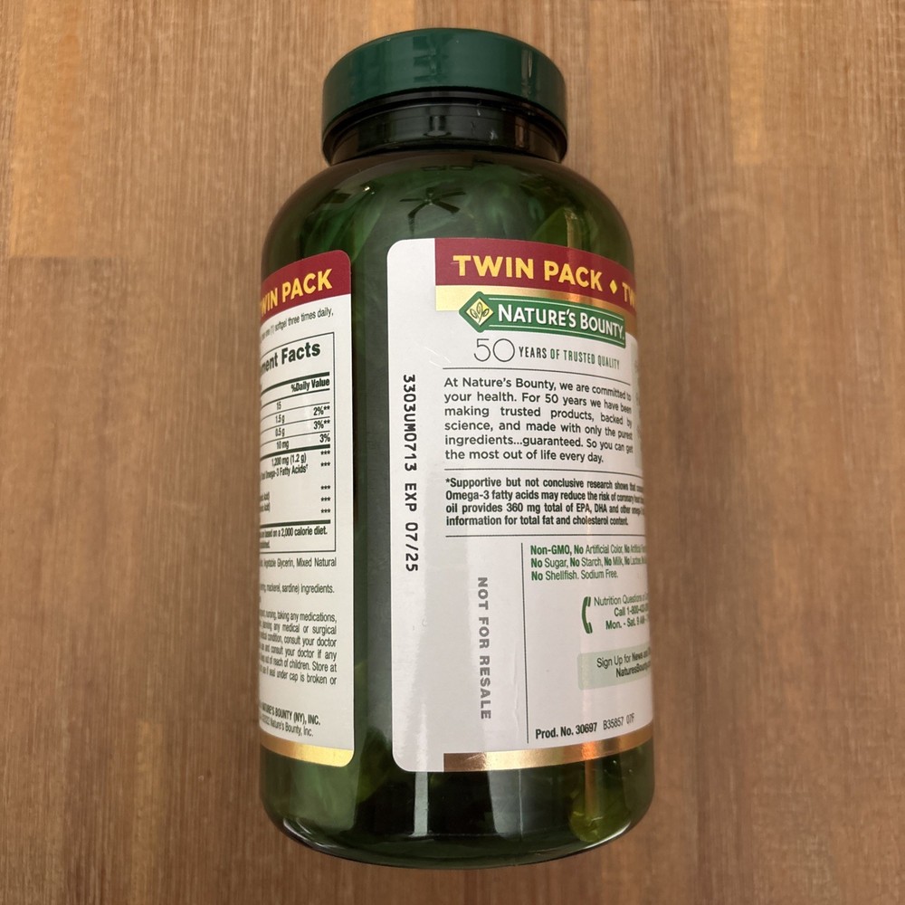 NEW Nature's Bounty Fish Oil 1200mg 360mg Omega-3 180 Softgels Exp 07/25. Not a twin pack, just a single bottle.