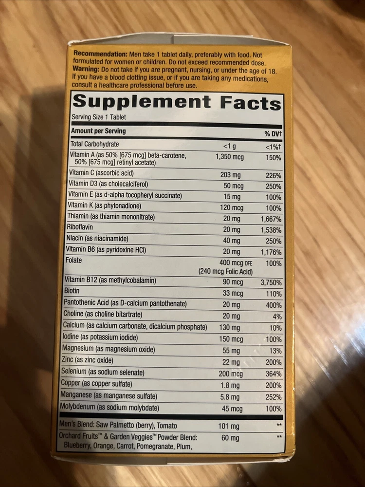 Size:60 Count (Pack of 1)Department:MenIngredients:MultivitaminFormulation:TabletModel:Does not applyBrand:Nature'sgtin13:0033674156919MPN:NWY-15691UPC:0033674156919ISBN:0033674156919Package Dimensions LxWxH:4.88x2.72x2.68 InchesColor:CreamWeight:0.35 PoundsEAN:0033674156919Type:Does not apply