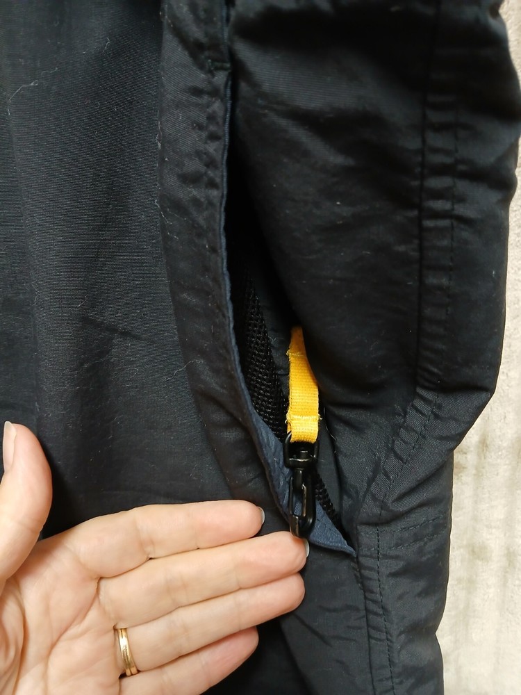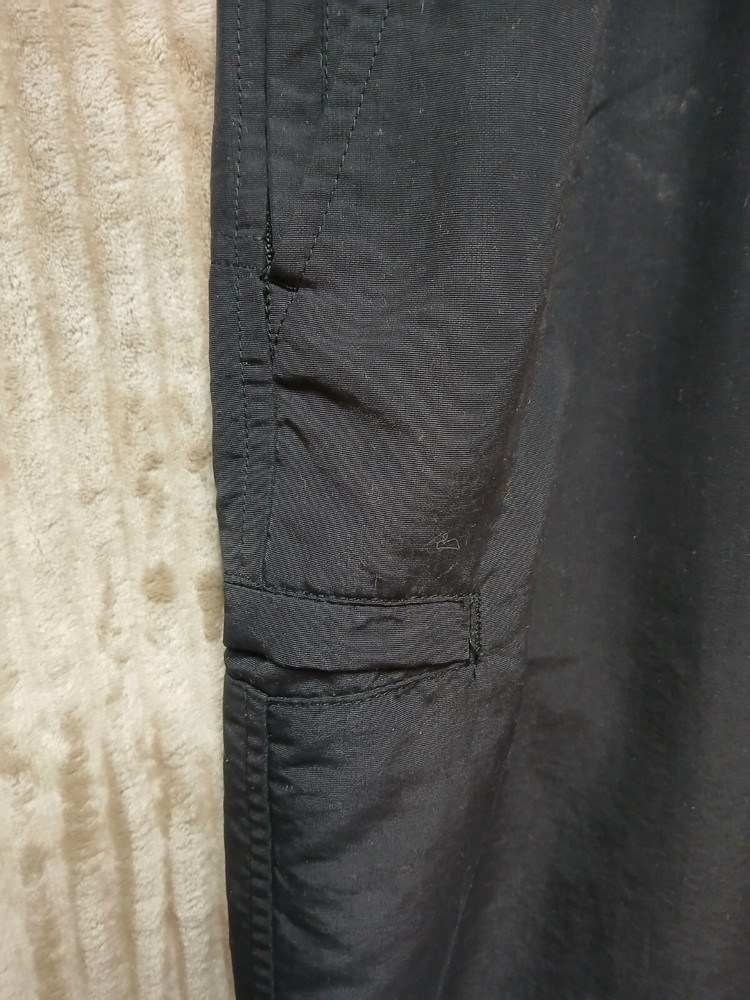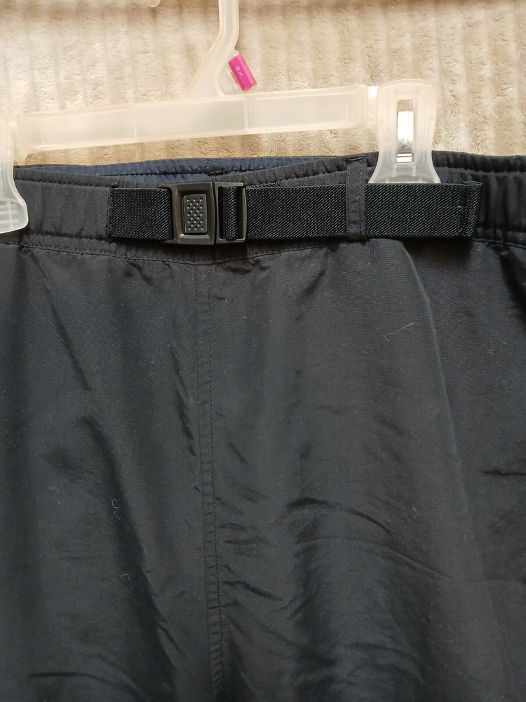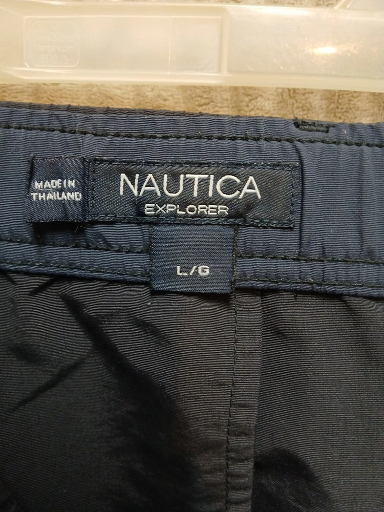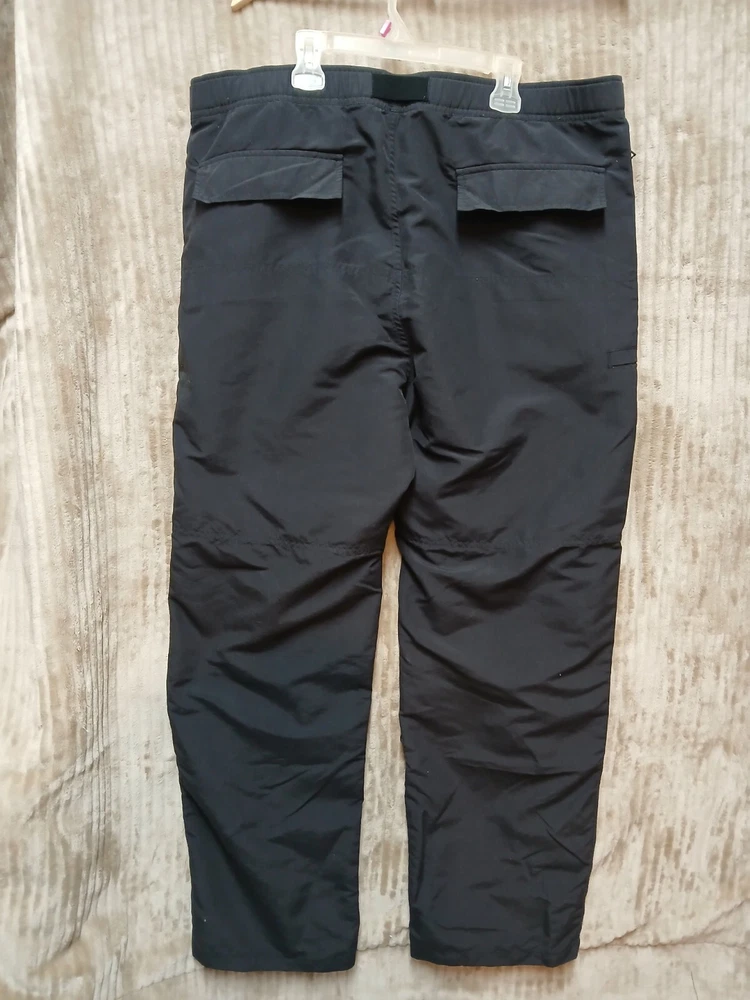 Experience the ultimate blend of comfort and functionality with the Nautica Explorer Men's Active Pants. Designed for the modern man on the go, these black woven nylon pants feature a relaxed fit, ensuring a flattering look for any casual or travel occasion. With a versatile straight leg style and 6 pocket design, these pants are an ideal choice for both active days out and laid-back lounging. Tailored for those who value practicality without compromising on style, these pants come with an elastic waistband and adjustable belt, providing a custom fit for your comfort. There are 2 front slash pockets, a side seam zipper pocket, two back pockets that snap closed, and a smaller pocket on the side of the leg. Partially lined. The lightweight material, coupled with water-resistant features, makes them perfect for all seasons. Easy care and machine washable, these pants are as practical as they are stylish. Pre-owned but in like new condition.