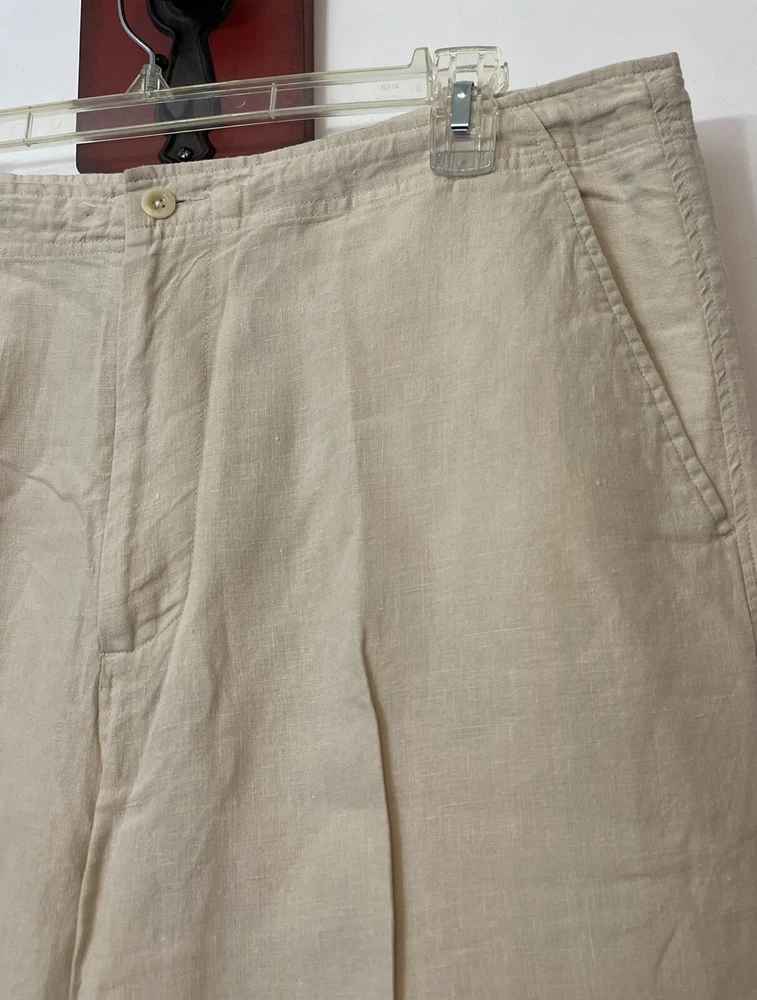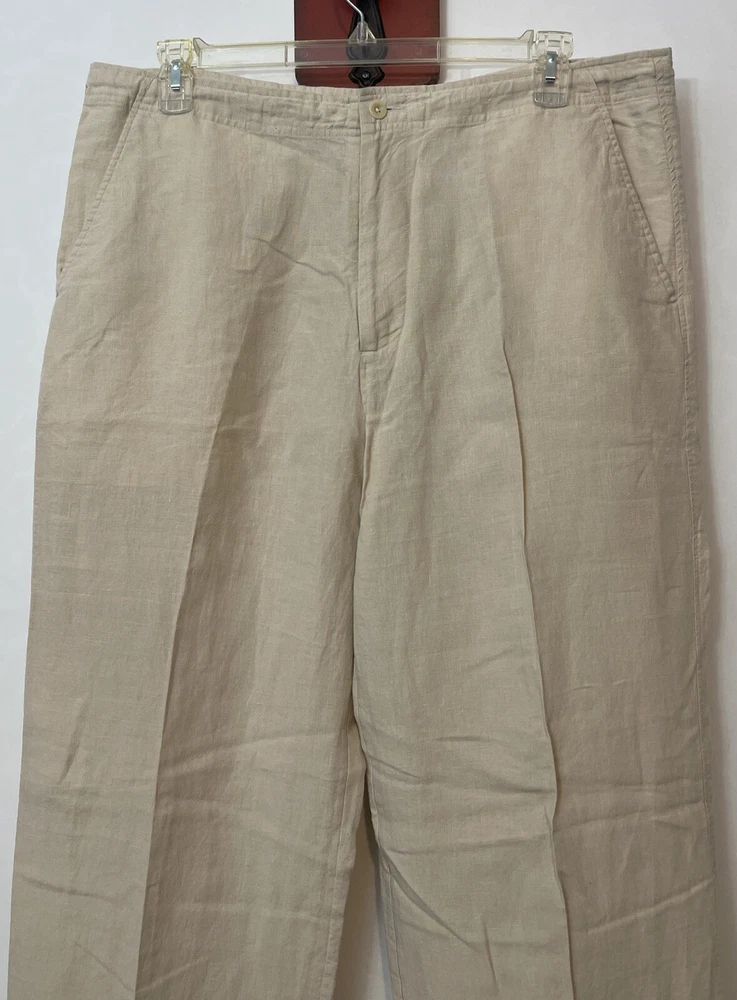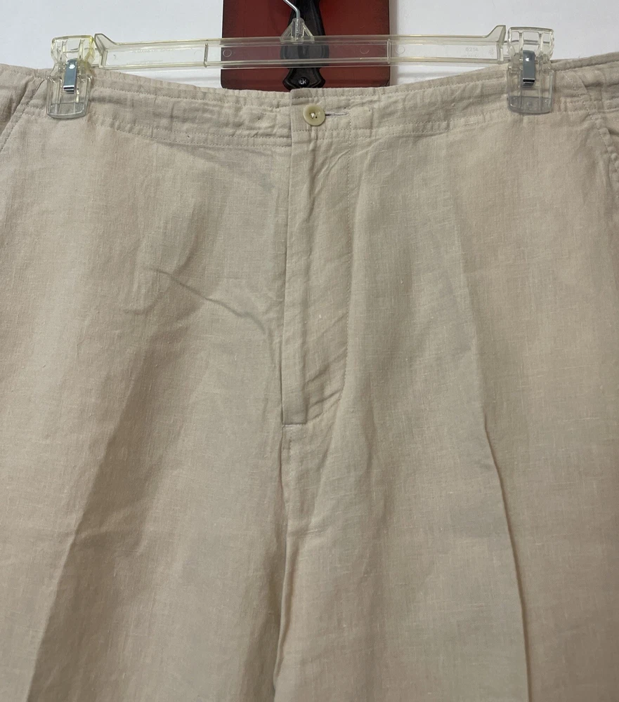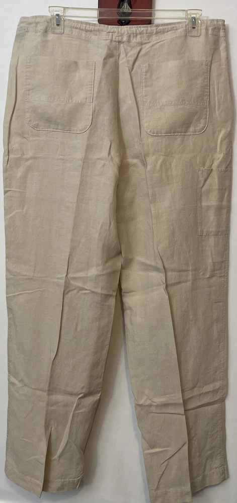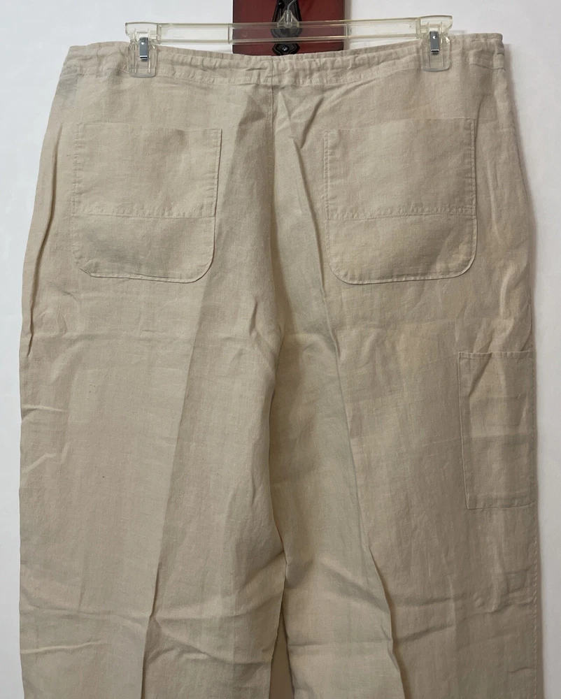 Nautica Explorer Mens XL Beige Loose Fit Straight 100% Linen Cargo Pants! A6653