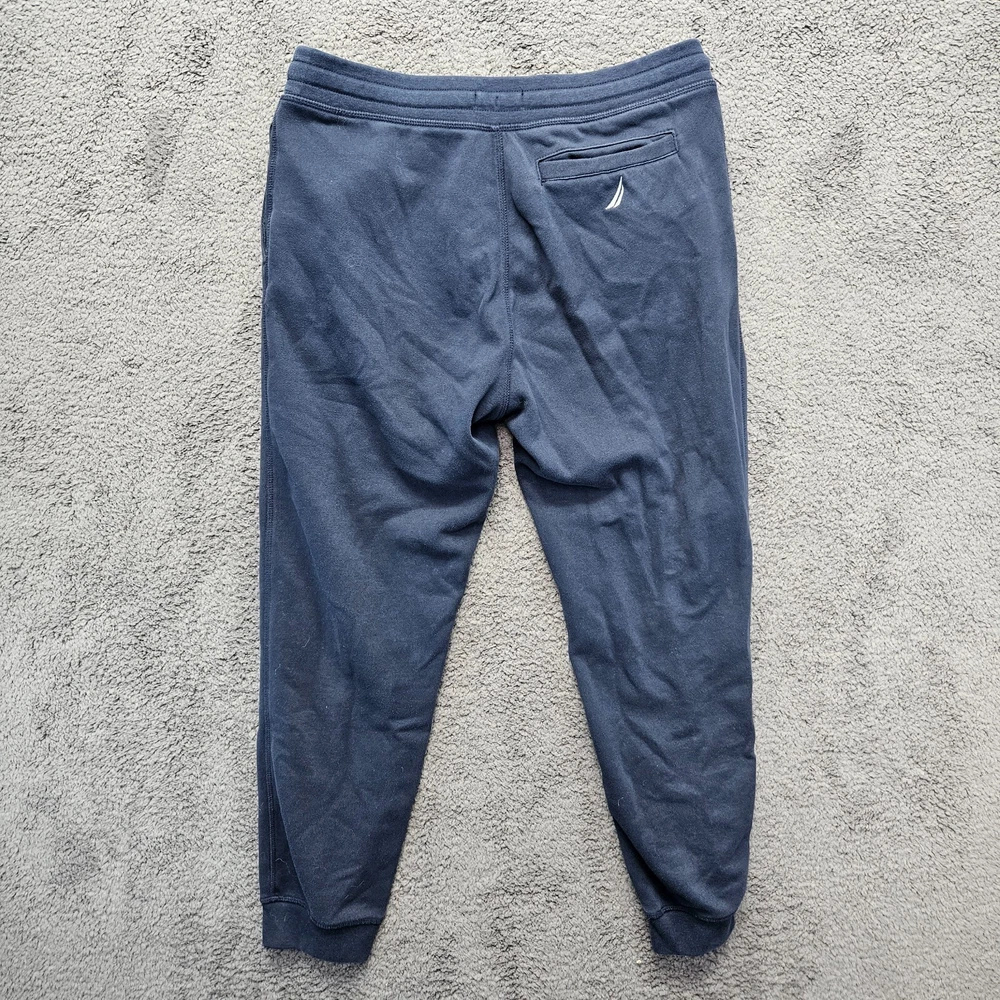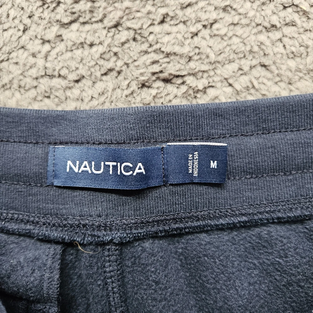 Department: Men Fit: Regular Size: M Inseam: 27 in Handmade: No gtin13: Does not apply Pattern: Solid Size Type: Regular Closure: Drawstring Material: 55% Cotton, 45% Polyester Garment Care: Machine Washable Fabric Type: Fleece Country/Region of Manufacture: Indonesia Style: Sweatpants Color: Blue Brand: Nautica Personalize: No Features: Pockets Type: Pants Waist Size: 32 in UPC: Does not apply Leg Style: Tapered Occasion: Activewear, Casual, Travel