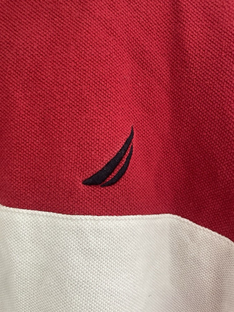 Nautica Kids Boys Logo Colorblock 100% Cotton Polo Short Sleeve Shirt Navy Red L. Condition is pre-owned. Smoke free, pet free home. Shipped via USPS Ground Advantage. In very good condition. Free of rips or stains.