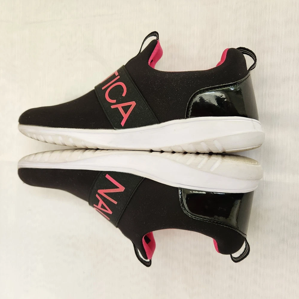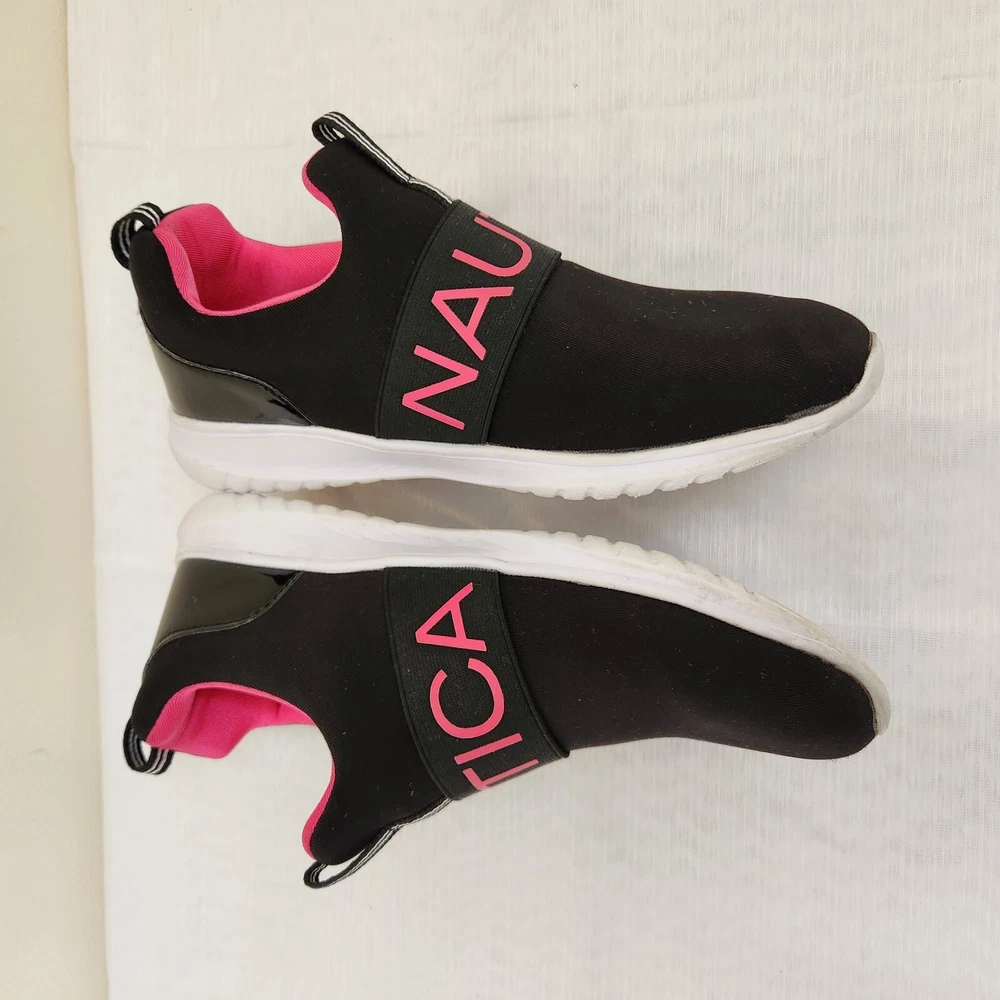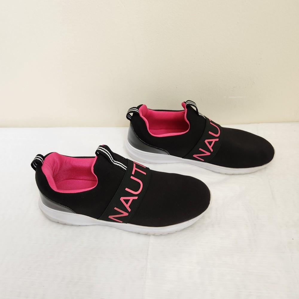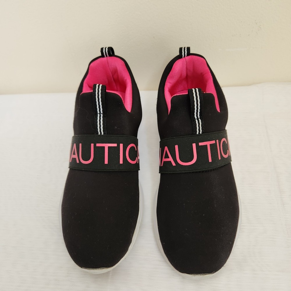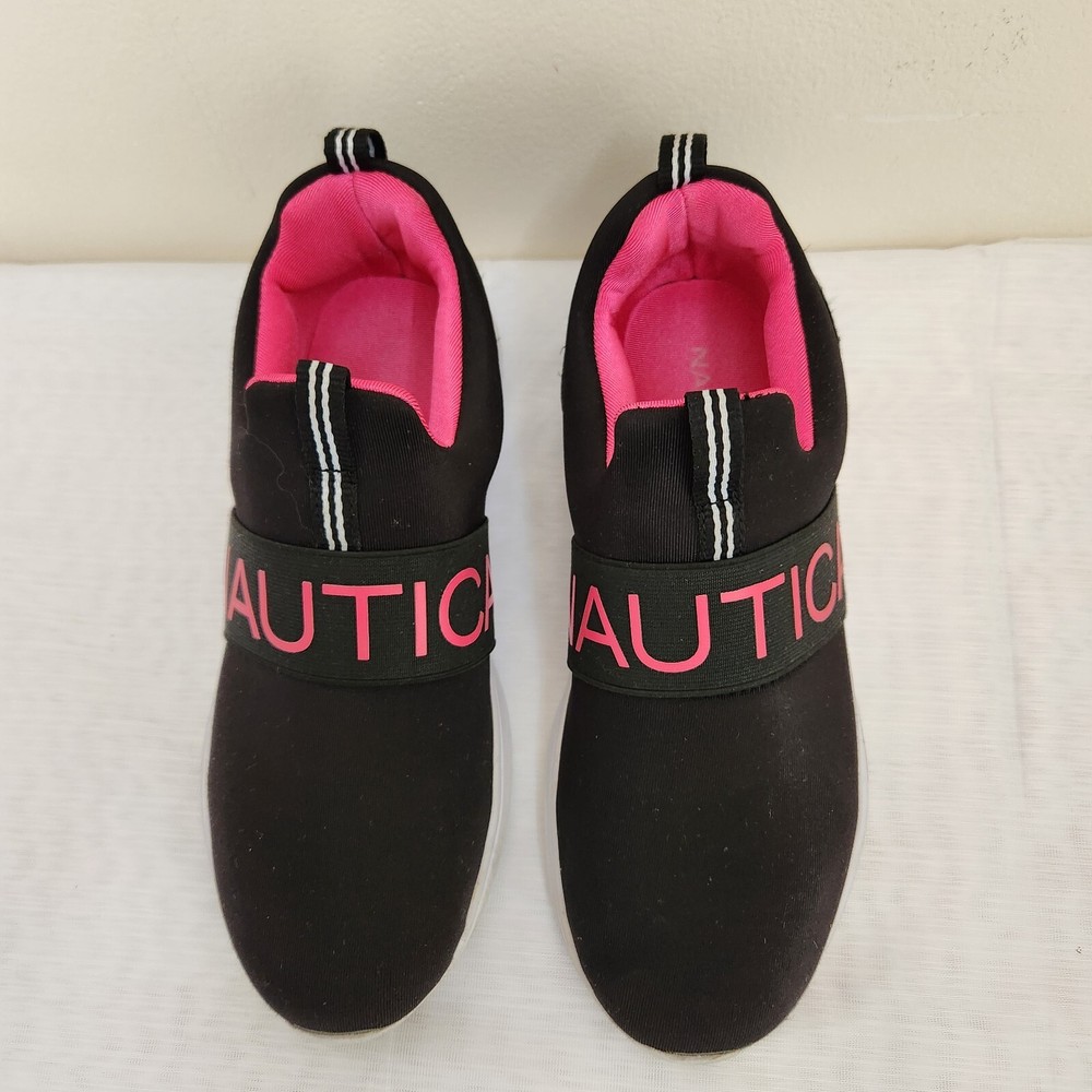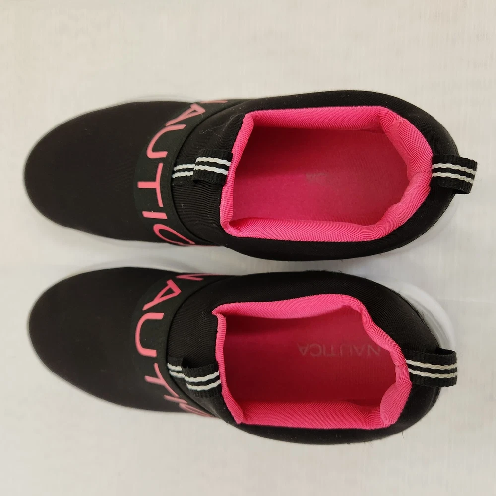 Nautica Shoes Girls 4 Black Pink Logo & Inner Lining Sneakers School Outdoor Fun - Pre-Owned in Very Good Condition - Returns acceptable within 30 days of purchase unworn, in original condition - Check out my E-bay Store. Lots of Choices Available. Reduced shipping for 2 or more items. Let me know before you pay so I can send you an invoice to discount the shipping