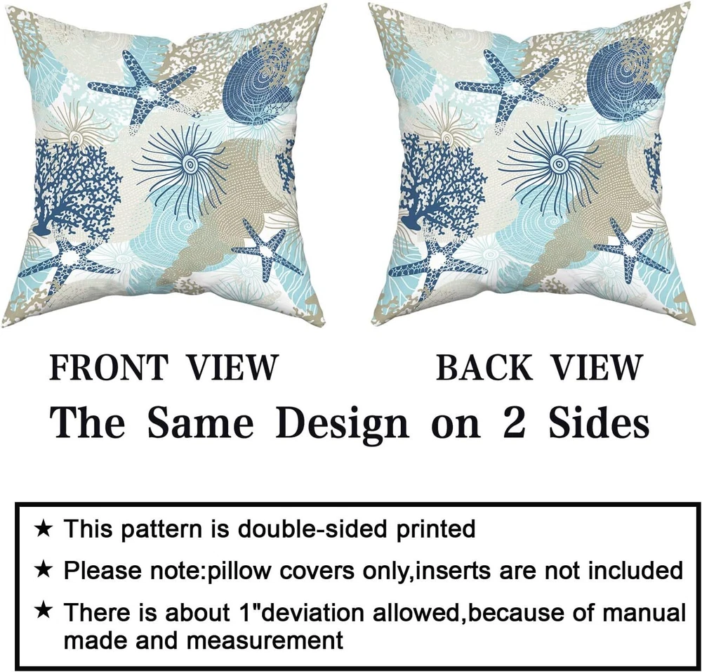 Nautical Coastal Pillow Covers 18X18 in Beach Ocean Themed Decorative Couch Pil