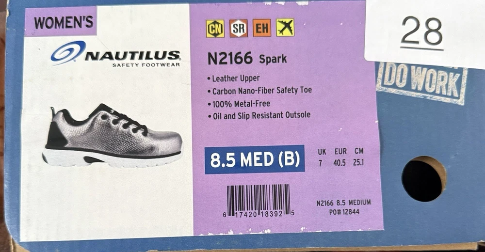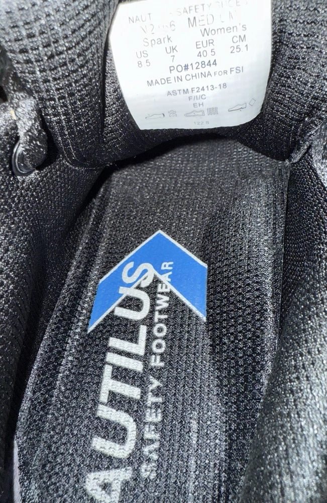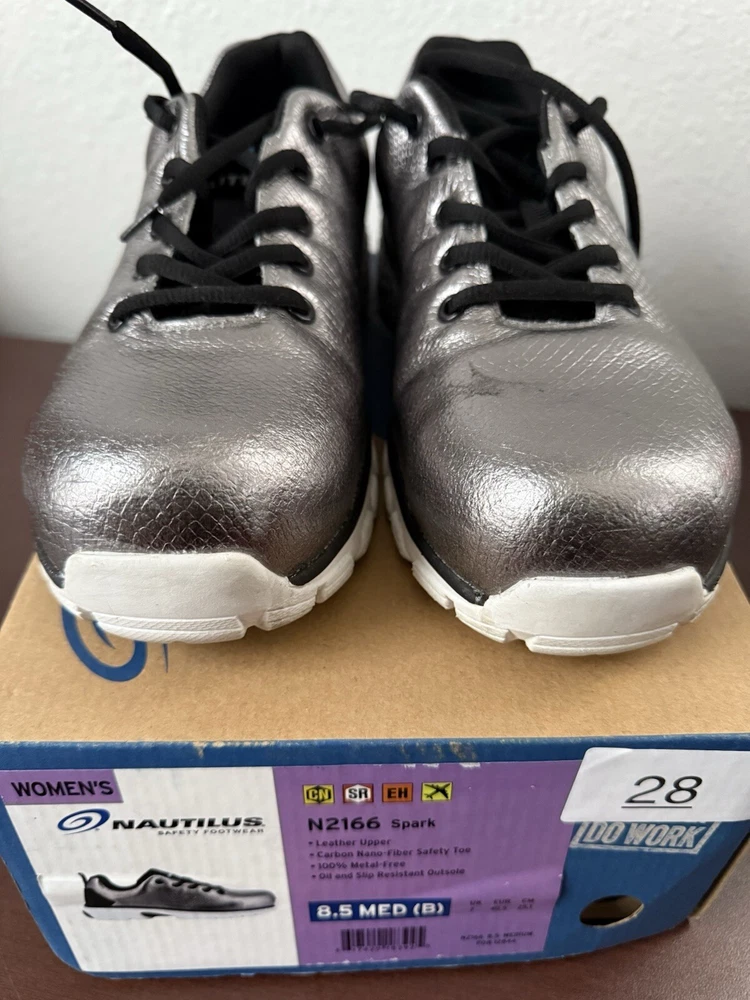 Product Information The Nautilus® Spark CT is a work shoe designed to help you work smart, not hard. Carbon nanofiber safety toe cap Traditional lace-up closure. Textile or leather upper. Lining and insole made of textile material. Removable dual density insole. No exposed metal and security friendly. A padded tongue and collar reduces skin irritation. EVA cushion midsole absorbs impact and provides rebounding with every step. Memory foam Strobel cushion is paired with a double cushion insole for superior comfort. Slip-resistant rubber outsole meets Mark II Oily/Wet Imported.