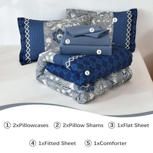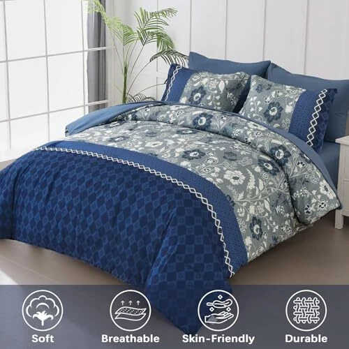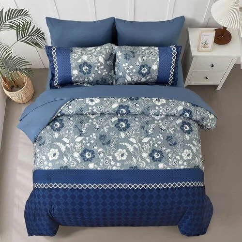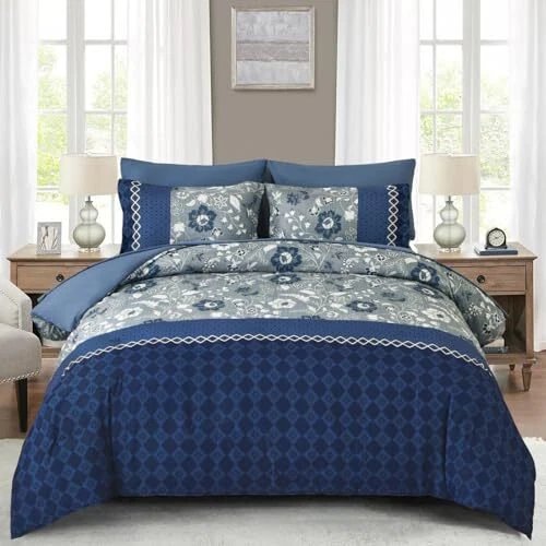 Return Policy Fast Delivery Trusted seller Navy Blue Comforter Set Queen, 7 Pieces Bed in a Bag Floral Geometric Patchwork Soft Microfiber Comforter Bedding Set with Comforter, Flat Sheet, Fitted Sheet, Pillow Shams,Pillowcases Product Description 【7 PIECES QUEEN BED IN A BAG】: Navy Blue floral geometric patchwork comforter bed in a bag queen with 1 Comforter 90" x 90" + 2 Pillowcases 20" x 26"+ 1 Fitted Sheet 60"x 80"+14"+ 1 Flat Sheet 90"x 102"+ 2 Pillow Shams 20"x 30". 【BOHEMIAN FLORAL GEOMETRIC PATCHWORK PATTERN】: Navy Blue boho floral geometric patchwork design, can be matched with any style of room, bring noble and elegant visual experience, the best gift for family and friends ! 【SOFT MICROFIBER BEDDING SET】: Navy Blue comforter queen size made of high quality and lightweight microfiber, fluffy and soft to the touch, light and breathable, bringing you the ultimate tactile enjoyment of your skin and providing you with a healthier quality of sleep all year round. 【EXQUISITE WORKMANSHIP】: Queen bed in a bag comforter size set is simple elegant bedding, several invisible stitching prevent the filling from shifting or leaking out,the firm stitching ensures it will last for years to come. 【EASY CARE】: High-quality fabric is not easy to tear, machine wash in the gentle cycle with cold water, do not bleach, keep the original color after washing. Shipping Returns Payment Shipping Shipping is FREE to all addresses other than APO/PO boxes in the lower 48 states. All our stock ships from US-based warehouses. Shipped via USPS or UPS (depending on location and package weight) Unless stated otherwise, all orders will ship within 24-72 hours of your payment being processed. Check our feedback to see the great reviews of FAST shipping we offer. Returns Seller does not accept returns Payment We currently accept payment via eBay managed payments only. Once payment is cleared, we will dispatch your shipment within 1-3 business days. Please refer to the "Shipping" tab for more information regarding shipping speed to your destination.