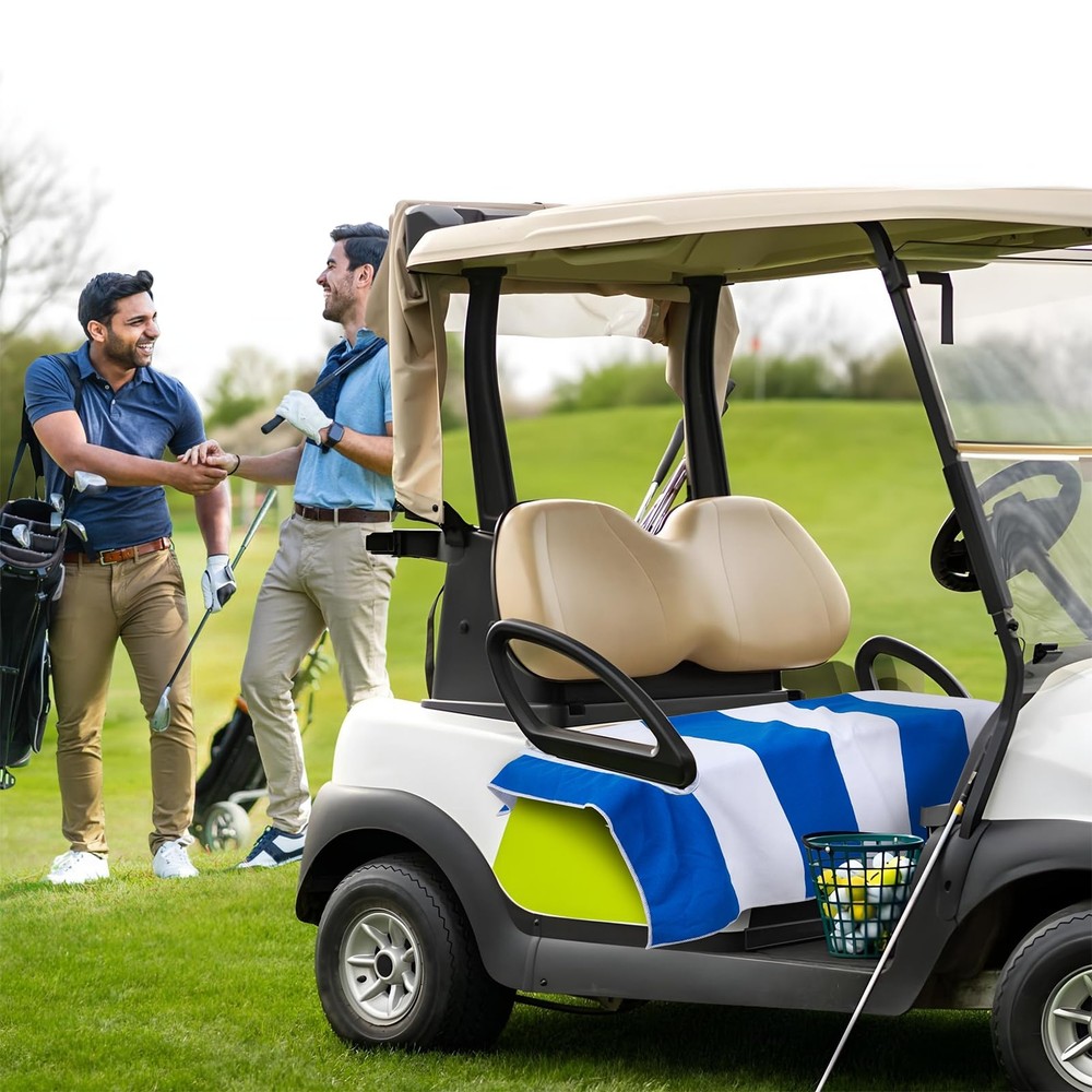 Golf Cart Seat Covers for Summer or Winter, Universal Durable Breathable Anti-hot Golf Cart Seat Towel Blanket for All EZGO, Yamaha, Club Car and More 2 Person Seats Golf Carts (Navy Blue) Universal Golf Cart Seat Covers: Dimensions 51'' (L) x 31'' (H), perfect fit for EZGO, Yamaha, Club Car, Icon, Extra and so on of the 2 seater golf carts. Soft & Super Absorbent Seat Covers for Golf Cart: Premium microfiber fabric, extremely soft and super absorbent and dry quickly. Vibrant and HD prints, fade-resistance, the eye-catching covers not only keeps your goft cart clean, but it also give it a unique look, Comfortable From Heat & Warm for Winter: Nice Protection from a hot, cold, or wet seat, it helps with heat from seats in the sun and prevent skin from sweat sticking or avoid legs burning up. It acts as a cozy blanket during chillier days. Best Gift for Golfer or Renter: This golf cart accessories-seat blanket is the best golf gifts for boss, fathers, husband, brothers and all of golf lovers, it is also a thoughtful gift for your wife, mather, girlfriend, sister. Easy to Install and Clean: Universal golf cart rear seat cover can quickly fix the handrail to keep it in place and it is very convenient to remove it. Folding up and stores in your golf bag easily too. Machine washable. Golf Cart Seat Covers (Navy Blue) Shipping We offer FREE shipping on all orders! We ship within Three business days of payment, usually sooner. We use a selection of shipping services such as UPS, FedEx, USPS etc. We only ship to the lower 48 states, no APO/FPO addresses or PO Boxes allowed. Local pickups and combined shipping options are not provided at this time. Return You can return a product for up to 30 days from the date you purchased it. Any product you return must be in the same condition you received it and in the original packaging. Please keep the receipt. Payment We accept payment by any of the following methods: PayPal Please pay as soon as possible after winning an auction, as that will allow us to post your item to you sooner! Feedback Customer satisfaction is very important to us. If you have any problem with your order, please contact us and we will do our best to make you satisfied. Contact Us If you have any queries, please contact us via ebay. We usually respond within 24 hours on weekdays. Please visit our eBay store to check out other items for sale! Thank you for shopping at our store.