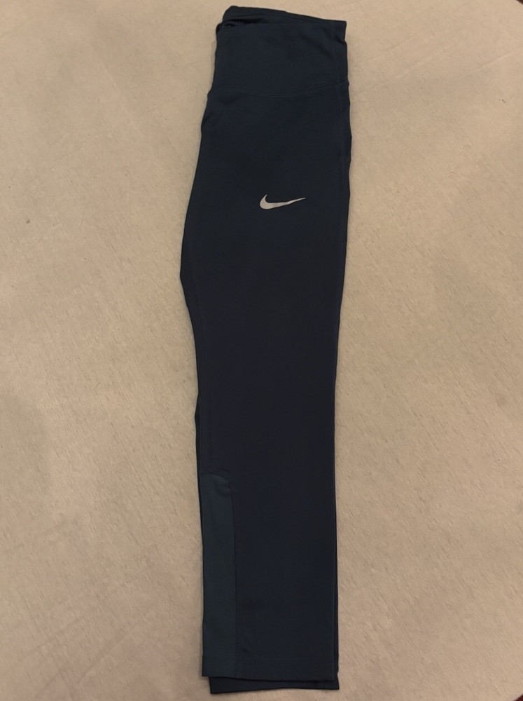 Elevate your workout wardrobe with these navy blue Nike leggings, perfect for gym enthusiasts and yoga lovers alike. Made from a blended fabric of polyester and spandex, these compression leggings offer a flared leg style and an elastic waist for a comfortable fit. The solid pattern and athleisure theme make these leggings suitable for any occasion, while the Dri-FIT technology keeps you cool and dry during intense workouts. Machine washable and easy to care for, these leggings are a must-have for any active woman.