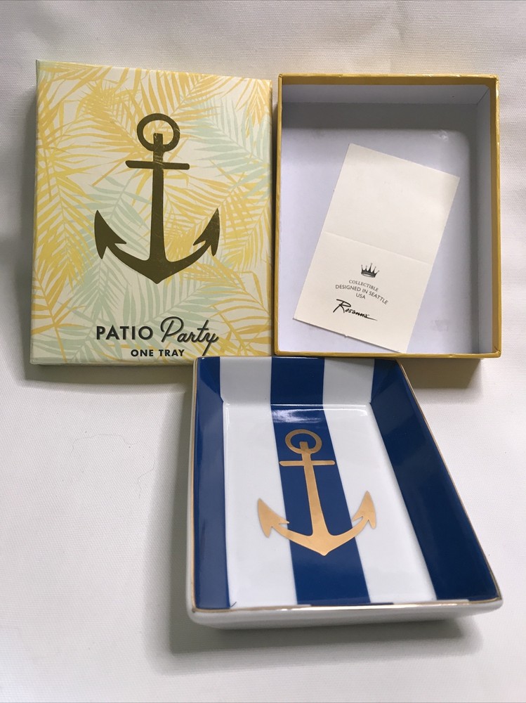 Items Included: Tray/Valet Station Brand: Rosanna Country/Region of Manufacture: China Type: Jewelry Organizer Shape: Rectangle Material: Porcelain Department: Unisex Adults Color: Blue Theme: Anchor Suitable For: Cufflinks, Ring, Bracelet, Necklace Lining Material: NA Features: Stackable