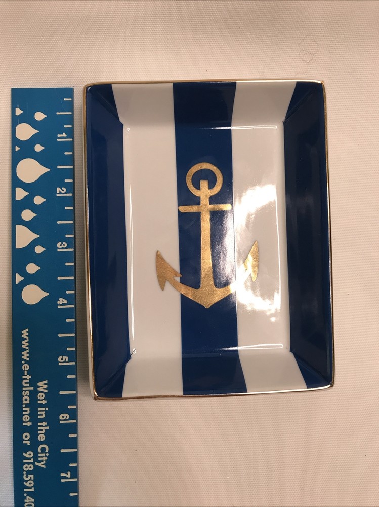 Navy Blue White Gold Anchor Trinket Tray Rosanna Jewelry Coin for Dad
