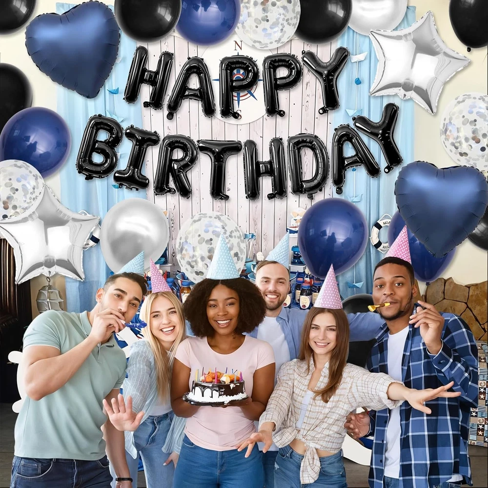 Store New Arrivals Add to Favorite View Feedback Contact Fast deliveries to the customer's home Quality customer service John Make the customers happy! Navy Blue and Black Birthday Decorations for Men,Blue Black White Balloons Happy Birthdays Balloon Banner Silver Confetti Balloons for Men Boy Girls Women Adults Birthday Party Decorations Description BLUE AND BLACK BIRTHDAY DECORATIONS:The package contains 8 x navy blue balloons(12inch), 8 x black balloons(12inch), 4 x silver confetti balloons(12inch),4 x metallic silver balloons(12inch),16inch black foil “Happy Birthday” balloon banner, 2 navy blue heart shaped foil balloons, 2 silver star shaped foil balloons, plus glue dot sheet and ribbon for easy assembly. RELIABLE LATEX AND FOIL:navy blue black party supplies are long-lasting, resistant to bursting, non-toxic, and safe for use. They are also reusable. Both types can be filled with air or helium. To avoid bursting, it is recommended to inflate foil balloons to about 85% capacity. The navy blue and black birthday decorations set brings you a unique birthday party experience. EASY TO ASSEMBLE: The navy blue black happy birthday decorations is simple to assemble, with included glue and ribbon for convenience. Hang the foil "Happy Birthday" banner easily, add star and heart foil balloons, and your stunning navy blue black birthday decor is ready. Enjoy DIY with family or friends to quickly create your ideal navy blue and black happy birthday decorations anywhere! SUITABLE FOR VARIOUS OCCASIONS: With a wide range of color options, you can choose your birthday party decorations to your liking. Perfect for both indoor and outdoor use, the vibrant confetti balloons,blue black birthday banner, and navy blue birthday decorations for men boys birthday leaving you with unforgettable birthday memories. SUITABLE FOR VARIOUS OCCASIONS: With a wide range of color options, you can choose your birthday party decorations to your liking. Perfect for both indoor and outdoor use, the vibrant confetti balloons,blue black birthday banner, and navy blue birthday decorations for him boys birthday leaving you with unforgettable birthday memories. Product description More Choice Navy Blue and Black Birthday Decorations Blue Black White Balloons Happy Birthdays Balloon Navy Blue and Black Birthday Decorations for Men,Blue Black White Balloons Happy Birthdays Balloon Banner Silver Confetti Balloons for Men Boy Birthday Party Decorations The video showcases the product in use. The video guides you through product setup. The video compares multiple products. The video shows the product being unpacked. blue black birthday Merchant Video Blue Black Happy Birthday Decorations Add to Cart Add to Cart Add to Cart Add to Cart Add to Cart Add to Cart Add to Cart Customer Reviews 4.4 out of 5 stars 290 4.1 out of 5 stars 12 4.1 out of 5 stars 12 4.1 out of 5 stars 12 4.1 out of 5 stars 12 4.1 out of 5 stars 12 4.1 out of 5 stars 12 Price $9.99 $ 9 . 99 $15.99 $ 15 . 99 $15.99 $ 15 . 99 $15.99 $ 15 . 99 $15.99 $ 15 . 99 $15.99 $ 15 . 99 $15.99 $ 15 . 99 Material Latex and Foil Latex and Foil Latex and Foil Latex and Foil Latex and Foil Latex and Foil Latex and Foil Suitable for people Boys and Men 10 year Boys 18 year Boys 30 year Men 40 year Men 50 year Men 60 year Men Color Navy Blue Black Navy Blue Black Navy Blue Black Navy Blue Black Navy Blue Black Navy Blue Black Navy Blue Black Harmless and Non-toxic ✔ ✔ ✔ ✔ ✔ ✔ ✔ Reusable ✔ ✔ ✔ ✔ ✔ ✔ ✔ Why Choose Our Birthday Decoration Sets? Our kits are fully stocked with aluminum balloons - two 18“ stars, two hearts, 16” “Happy Birthday” balloon banner; and 25 or more latex balloons in matching colors. Decorate a fantastic scene for your birthday! What kind of people are our birthday kits for? Suitable for anyone! We come equipped with 14 different colorful birthday kits to choose from! Not only do we have a princess-like assortment of pastel colors, but we also have blue for men, as well as neutrals and more. Is the kit non-toxic and harmless? Yes, not only is it non-toxic and harmless, but at the same time our set is also reusable, just use the straw to expel the air, fold and store it well, and you can recycle the aluminum film balloons anytime! What should I be aware of when using it? The best inflatable to 85%, to avoid blowing up; away from sharp objects; avoid prolonged exposure to the sun; be careful of the danger of suffocation; children should be accompanied by parents to use What if I have other questions about the “Happy Birthday” decorations? Both before and after the sale, we welcome your careful and feedback. If you have any questions about our products well, or encounter problems when using, please consult us at the first time. CPSIA Cautionary Statement Choking Hazard - Balloon Unit Count 1.0 Count Color Navy Blue Included Components Glue Dot Sheet, Ribbon, 'Happy Birthday' Banner, Star Foil Balloons, Heart Foil Balloons Material Rubber Foil Item Weight 6 ounces Theme Birthday Occasion men him boy Birthday Party Baby Shower Special Feature Confetti Package Dimensions 7.36 x 4.92 x 1.97 inches Size 12 inches, 16 inches ABOUT US We offer the best prices around on high quality products. Our E-store includes media such as books, movies, music and games while offering electronics, toys, sporting apparel, clothing, tools, general home, garden items and more. SHIPPING We are always working hard to ensure your package arrives as soon as possible. Please understand that some factors like weather, high postal traffic, and the performance of shipping companies are outside of our control. We offer free shipping to the lower 48 states and ship within 2 business days of payment, usually sooner. We do not accept P.O. Boxes. Please provide a physical address. For shipping outside of the continental USA, we only use eBay's Global Shipping Program. The item is shipped to KY and then sent to the rest of the world. International customer