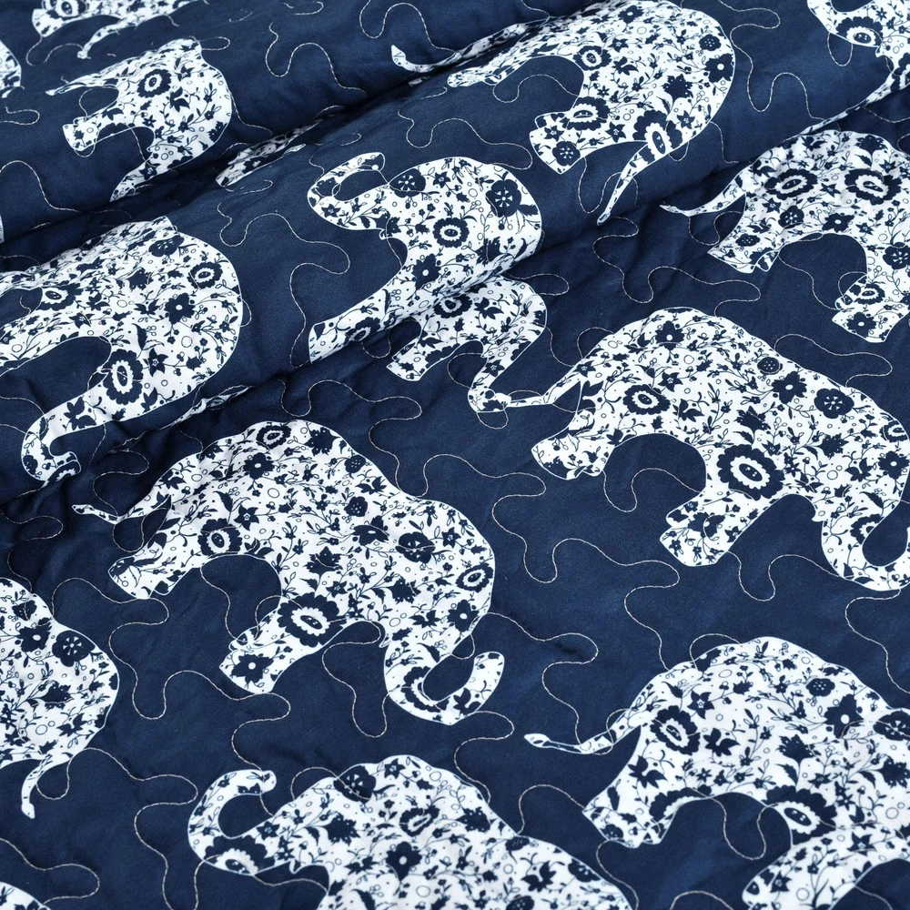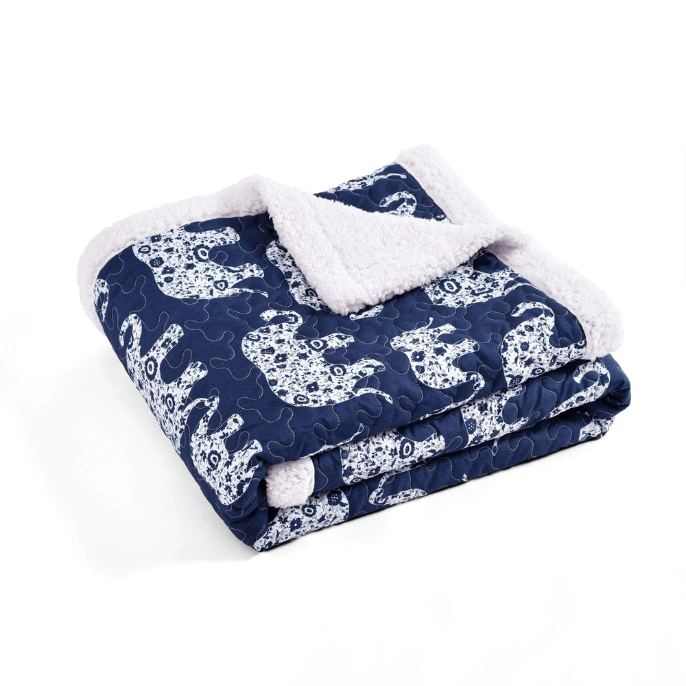 Navy Elephant Parade Throw Fuzzy Reversible Sherpa Blanket 60” x 50 White
