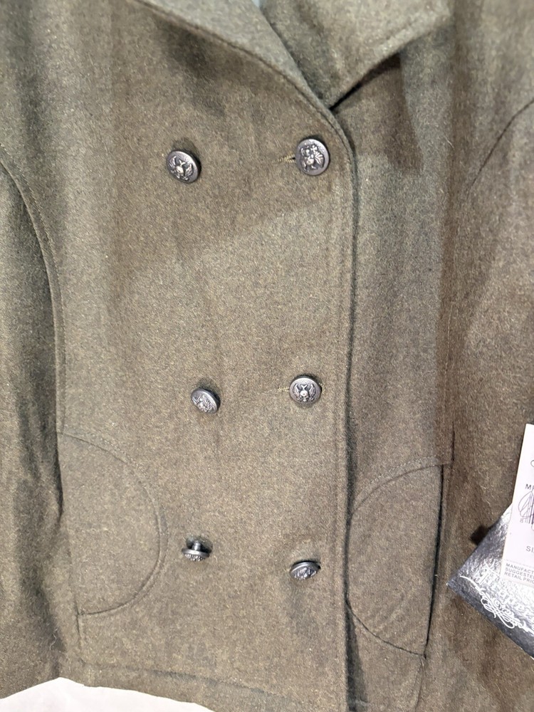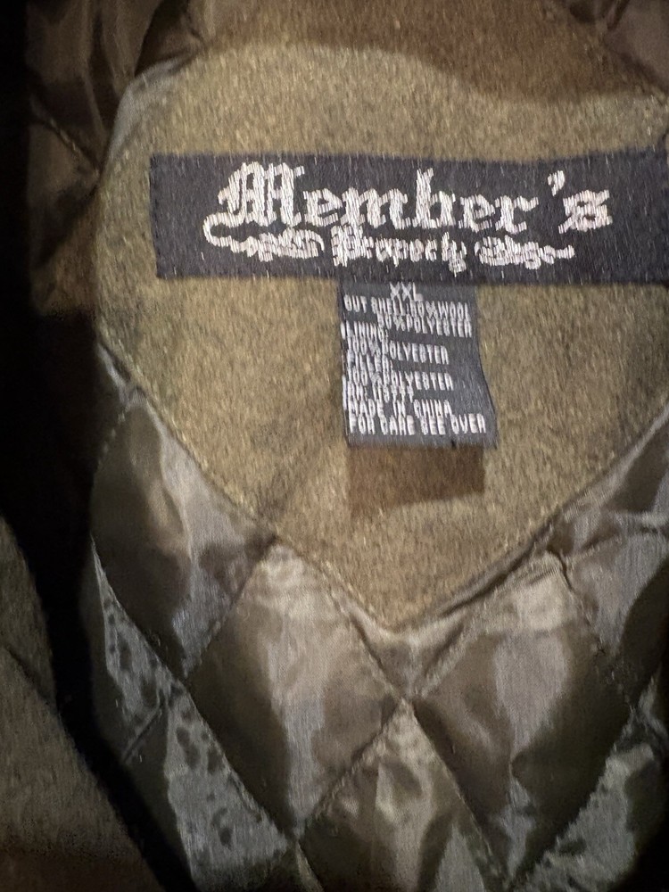 **PLEASE NOTE Looks smaller than XXL on tags) Elevate your style with this stunning navy pea coat from Members Property. This jacket features green scull buttons, quilted accents, and a spread collar for a classic and timeless look. The outer shell material is made of wool/polyester knit fabric, which makes it perfect for winter, fall, and spring seasons. This mid-length jacket is suitable for various occasions such as travel, party/cocktail, casual, and business. It has a chest size of 40 inches and a slim cut fit size type. The jacket is dry clean only and comes with a polyester lining material. The jacket is perfect for walking activities and has a nautical and classic theme.