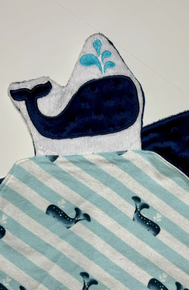 Navy Whale Baby Lovey Security Blanket Appliquéd Flannel Minky Baby Gift