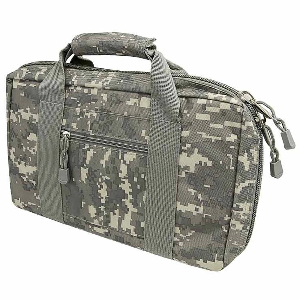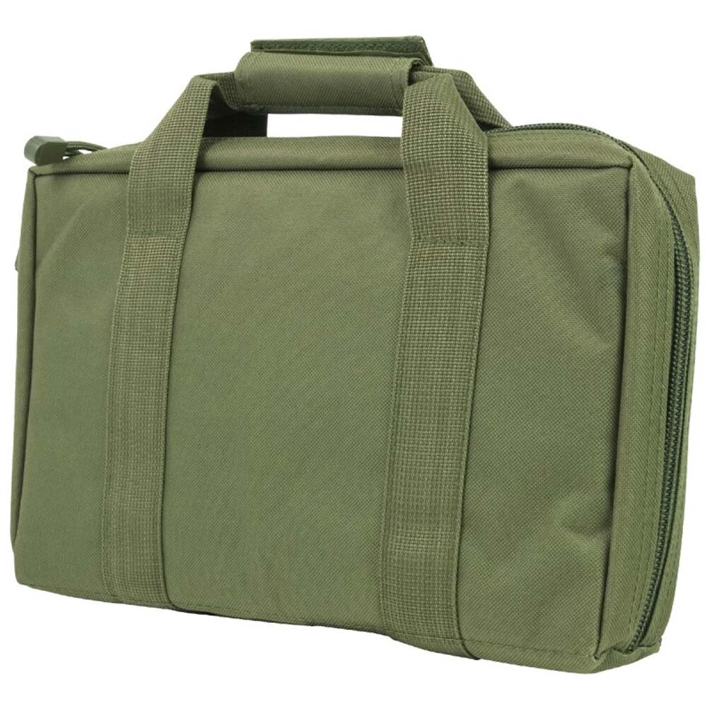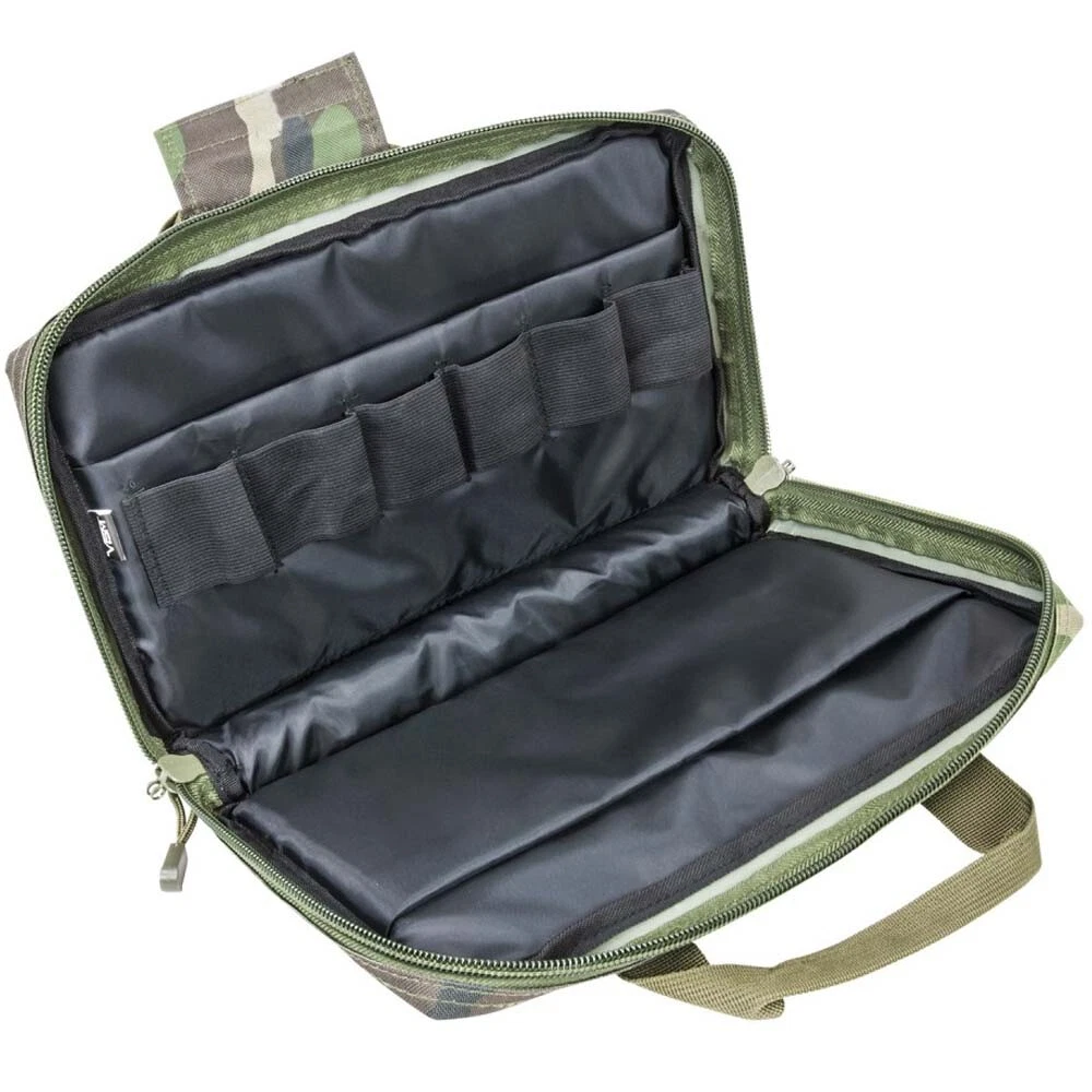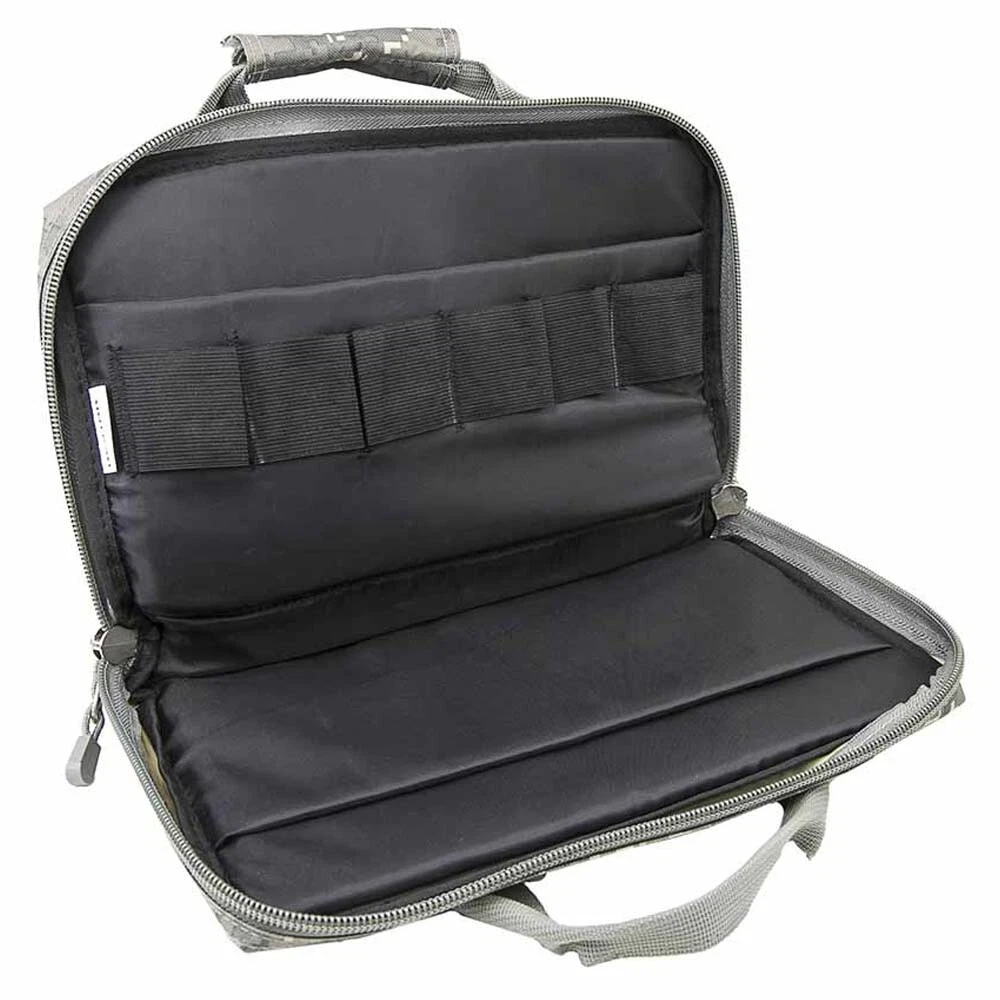NcSTAR VISM is a manufacturer of high quality tactical accessories. They have been manufacturing high quality products since 1997. They are dedicated to providing customers with top of the line pouches, optics, and tactical equipment for the most affordable price out there. The NcSTAR Discreet Pistol case is the ideal solution to storing and taking your pistols on your trip to the range. The case is composed of a heavy duty nylon construction that is durable and will withstand most wear and tear you put it through. The case features 2 padded pistol compartments. The compartments are large enough to hold a full size pistol in each. The case also features elastic loops for magazine storage. Item Condition - Brand New in packaging Manufacture: NcSTAR Colors: Black, Black / Pink, Black / Purple, Blue, Digital, OD Green, Pink Camo, Tan, Urban Gray, Woodland Camo Size: 12.5"L x 2.25"W x 7"H Weight: 10 oz Features: - Holds 2 pistols at a time - Padded pistol compartments for protection for your pistols - 6 elastic loops for magazine storage (can hold up to 6 double stack or 12 single stack magazines) - Heavy duty wrap around handles - Small front pocket for additional storage - Lockable metal zipper pulls - Heavy duty zippers