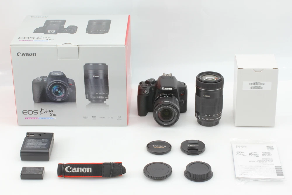 [Near MINT] Canon EOS Rebel T8i / EOS 850D w/ Double Zoom Kit From JAPAN #2022412 Description Total Condition; Near MINT Serial Number; 411033000619 Appearance; Appearance is beautiful. tiny scuffs from normal use. It shows signs of use. *Please check photos. Optics; -Finder: Beautiful condition. There is no fog. There is no fungus. There is no balsam separation. There are no scratches. There are no large dusts. No problem in the view. -Lens: EF-S18-55mm F4-5.6 IS STM Beautiful condition. There is no fog. There is no fungus. There is no balsam separation. There are no scratches. There are no large dusts. No problem in the shooting. -Lens: EF-S55-250mm F4-5.6 IS STM Beautiful condition. There is no fog. There is no fungus. There is no balsam separation. There are no scratches. There are no large dusts. No problem in the shooting. Functional; It works properly. Number of shutter clicks: unknown Menu language: English Bundled Items; All you can see on the picture will be included in a set of a package. Above condition is based on my own opinion. Please check the photo carefully. Please feel free to contact me for any questions! Thank you. Shipping I send a product by DHL . I attach the tracking number. Please bid it without worrying. Shipping is available from Monday to Friday. Weekends are not available because office is closed. Storage and Packing Storage Immediately after shooting, it is placed in a closed container with desiccant and stored for 24 hours and 365 days in a temperature and humidity controlled warehouse. All products, including cameras and lenses, are stored in a temperature- and humidity-controlled warehouse 24 hours a day, 365 days a year. Packing By weight and shape of each product, I use 13 kind of cushioning materials and pursue safety and weight reduction. Returns Unconditional Return Policy Customer service and satisfaction are very important to us. I have an unconditional return policy if notified within 30 days of the receipt of the item. All returned items must be the original condition. All return requests must be made within 30 days of the receipt of the item. Please contact me first for return before you ship it back to me. The postage of the returned goods is a buyer burden. International Buyers Please Note: Import duties, taxes, and charges are not included in the item price or shipping cost. These charges are the buyer's responsibility. Please check with your country's customs office to determine what these additional costs will be prior to bidding or buying.