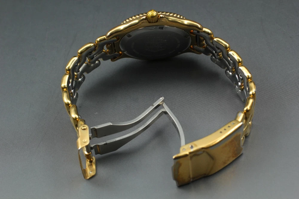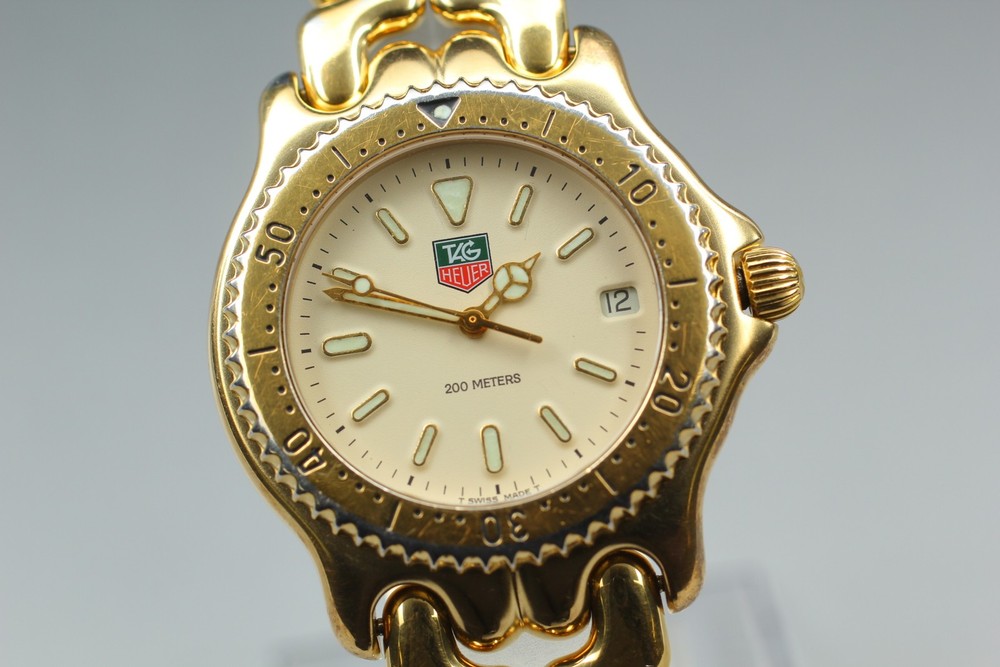 [Near MINT] TAG HEUER S/el S94.706 M/E Gold Cream Dial 37mm Men's Qz Watch #55550152 Description Total Condition; Near MINT Appearance; Appearance is beautiful. tiny scuffs from normal use. It shows signs of use. *Please check photos. Functional; It works properly. The watch is currently running smoothly, but since it is a battery-powered watch, there is a possibility that it will stop during transportation. Please understand that we do not guarantee that this will happen. Please contact me first for return before you ship it back to me. Bundled Items; All you can see on the picture will be included in a set of a package. Above condition is based on my own opinion. Please check the photo carefully. Please feel free to contact me for any questions! Thank you. Shipping I send a product by FedEx International Priority,eBay SpeedPAK Express . I attach the tracking number. Please bid it without worrying. Shipping is available from Monday to Friday. Weekends are not available because office is closed. Returns Unconditional Return Policy Customer service and satisfaction are very important to us. I have an unconditional return policy if notified within 30 days of the receipt of the item. All returned items must be the original condition. All return requests must be made within 30 days of the receipt of the item. Please contact me first for return before you ship it back to me. The postage of the returned goods is a buyer burden. International Buyers Please Note: Import duties, taxes, and charges are not included in the item price or shipping cost. These charges are the buyer's responsibility. Please check with your country's customs office to determine what these additional costs will be prior to bidding or buying.