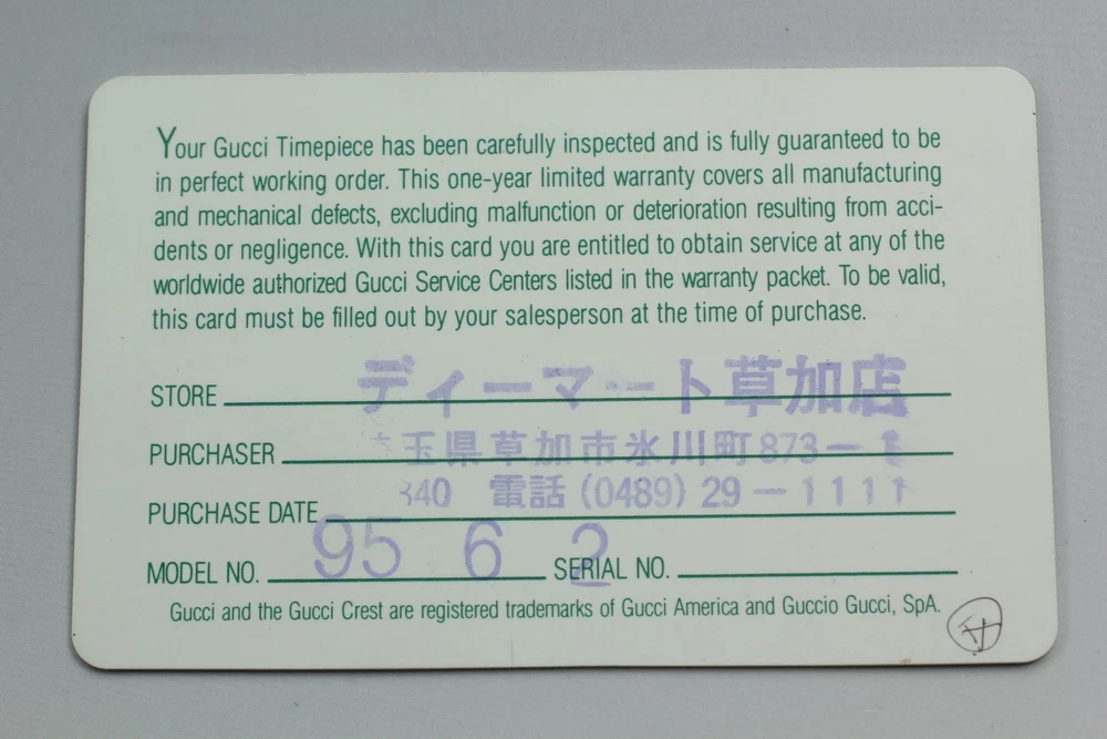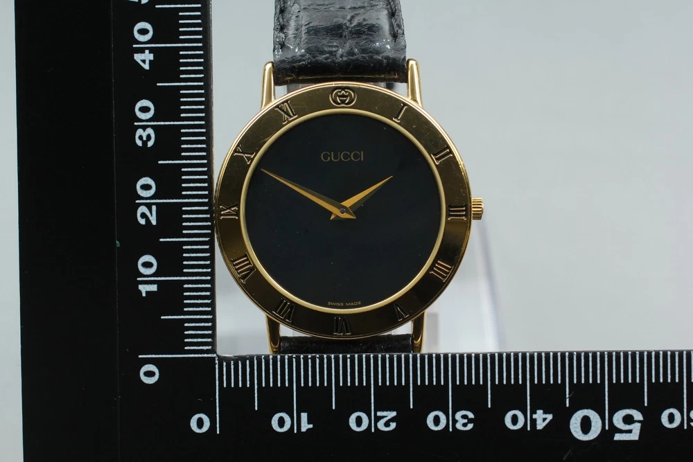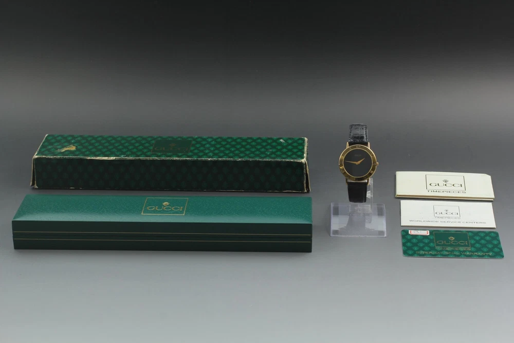 [Near MINT w/Box Paper] Vintage GUCCI 3000.2.M Black Dial Quartz Women`s Watch #287 Description Total Condition; NEAR MINT TOP MINT Pre-owned, Almost new item MINT Pre-owned, Like new NEAR MINT Pre-owned, almost no signs of use EXCELLENT+++++ Pre-owned, minimal signs of use EXECELLENT Pre-owned, heavy signs of use VERY GOOD Poor appearance Case : Near MINT Band : Exc+++++ Windshield : Near MINT Serial Number; 0536118 Appearance; Appearance is beautiful. tiny scuffs from normal use. It shows signs of use. *Please check photos. Functional; It works properly. Bundled Items; Box Paper All you can see on the picture will be included in a set of a package. Above condition is based on my own opinion. Please check the photo carefully. Please feel free to contact me for any questions! Thank you. Shipping I send a product by DHL . I attach the tracking number. Please bid it without worrying. Shipping is available from Monday to Friday. Weekends are not available because office is closed. Storage and Packing Storage Immediately after shooting, it is placed in a closed container with desiccant and stored for 24 hours and 365 days in a temperature and humidity controlled warehouse. All products, including cameras and lenses, are stored in a temperature- and humidity-controlled warehouse 24 hours a day, 365 days a year. Packing By weight and shape of each product, I use 13 kind of cushioning materials and pursue safety and weight reduction. Returns Unconditional Return Policy Customer service and satisfaction are very important to us. I have an unconditional return policy if notified within 30 days of the receipt of the item. All returned items must be the original condition. All return requests must be made within 30 days of the receipt of the item. Please contact me first for return before you ship it back to me. The postage of the returned goods is a seller burden. International Customers Please Note: Import duties, taxes, and fees are not included in the item price or shipping costs. (For US customers, duties are included in the shipping cost so there are no additional costs other than sales tax.) These fees are the buyer's responsibility. Please check with your country's customs office to determine what these additional costs will be prior to bidding or buying.