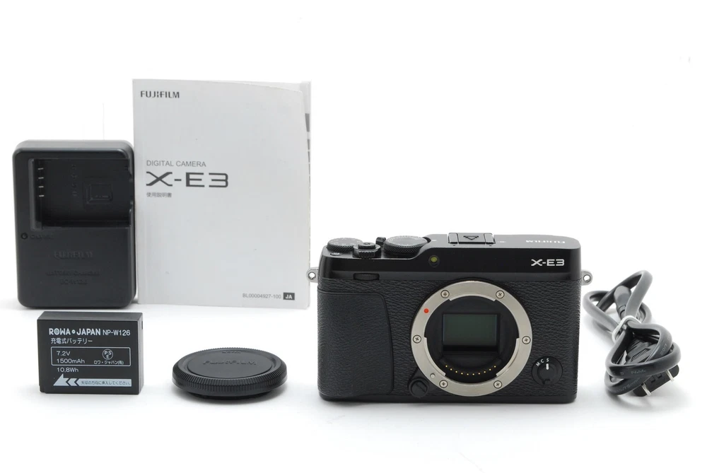 [Near Mint] Fujifilm Fuji X-E3 24.3MP Mirrorless Digital Camera Body Black From Japan Description Total Condition Near Mint Serial Number 7D020054 Appearance Beautiful appearance. Tiny scuffs from light use. * Please check photos & video. Optics -Finder: Beautiful condition. There is no fungus. There is no fog. There is no balsam separation. There is no scratches. There is a few dust. No problem in the view. -Lens: Beautiful condition. There is no fungus. There is no fog. There is no balsam separation. There are no scratches. There is a few dust. No problem in the shooting. -LCD screen: Beautiful condition. There are no scratches. Protective cover sheet is attached. No problems in the view. Functional English setting. It works properly. Bundled Items ・Buttery ・Buttery charger ・Body cap ・Instructions (japanese) All you can see on the picture will be included in a set of a package. Above condition is based on my own opinion. Please check the photo carefully. Please feel free to contact me for any questions! Thank you. Payment Payments are managed by eBay. Buyers can choose from more payment methods such as credit card, Apple Pay, Google Pay, PayPal and more. Shipping We will send your goods by FedEx International Priority or DHL, EMS. We will provide you with a tracking number. Please bid with confidence. We only ship to addresses registered with Ebay. Please note that we cannot ship to addresses that are not registered with Ebay. We ship Monday through Friday Japan time. On Sundays (Japan time), pickups are closed and shipping will be arranged the next day. Clean All products are disinfected with alcohol and meticulously cleaned. Packing and Storage Storage Method All products are stored in temperature- and humidity-controlled warehouses 24 hours a day, 7 days a week. Packing The packaging is strictly handled by professionals. Returns Unconditional Return Policy Customer service and satisfaction are very important to us. I have an unconditional return policy if notified within 30 days of the receipt of the item. All returned items must be the original condition. All return requests must be made within 30 days of the receipt of the item. Please contact me first for return before you ship it back to me. The postage of the returned goods is a seller burden. International Buyers Please Note: Import duties, taxes, and charges are not included in the item price or shipping cost. These charges are the buyer's responsibility. Please check with your country's customs office to determine what these additional costs will be prior to bidding or buying.