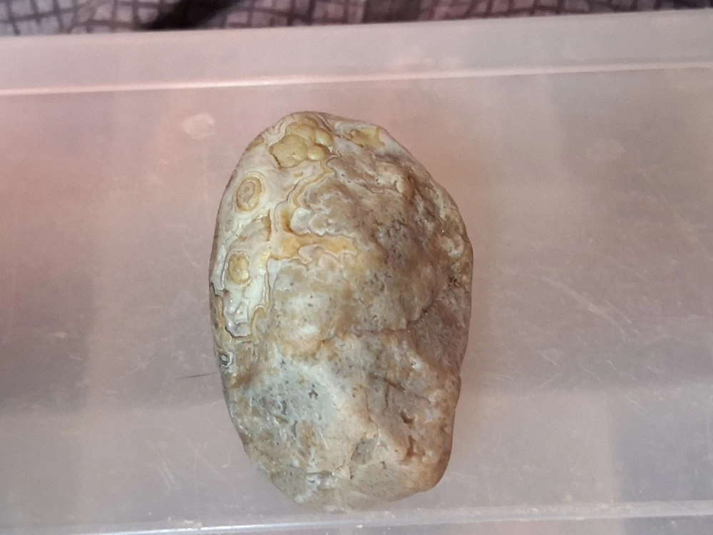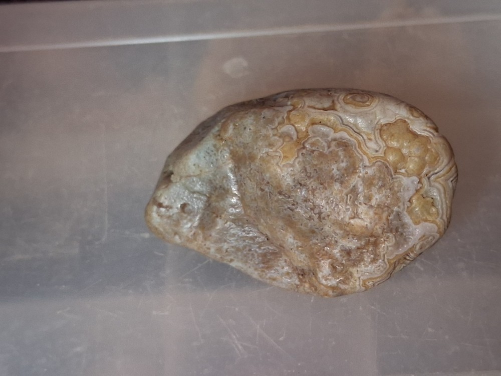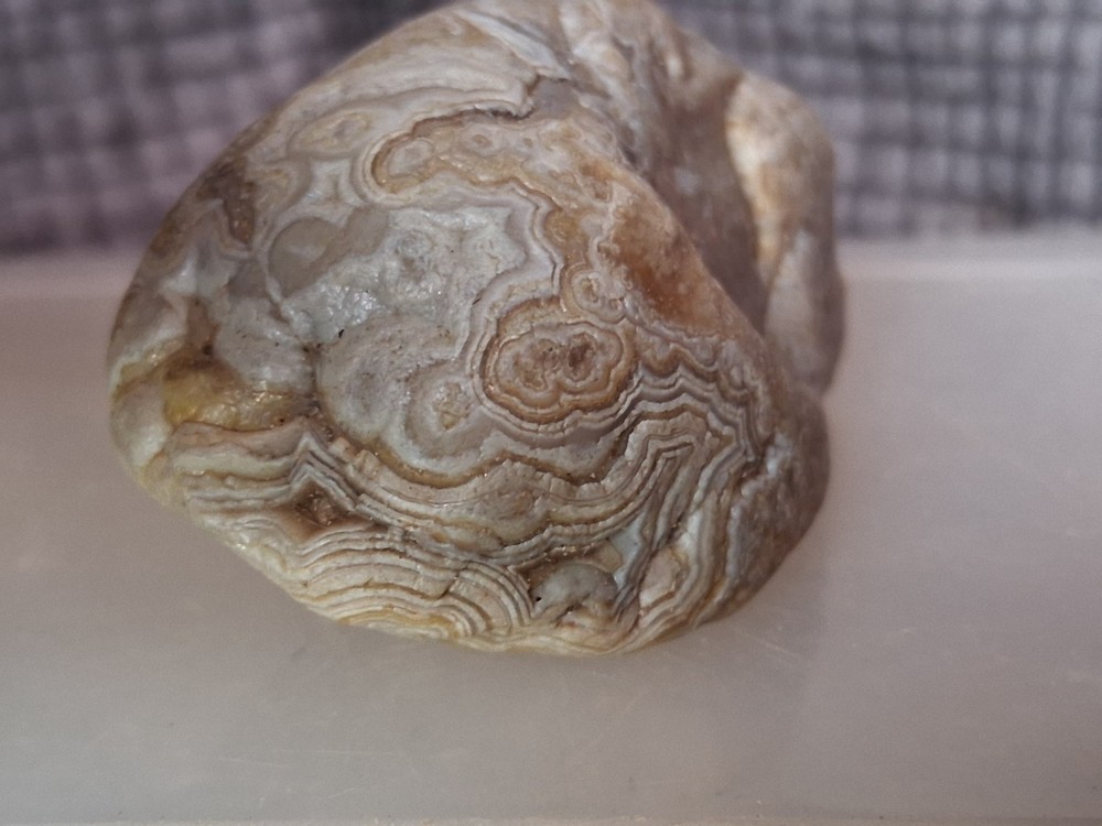 The Fairburn Agate is a type of display specimen, specifically a crystal and mineral specimen. It is a unique and collectible item that falls under the category of rocks, fossils, and minerals. This particular agate showcases striking patterns and colors created by the natural process of sedimentary rock formation, making it a visually appealing addition to any collection. Its geological significance and aesthetic value make it a coveted piece for collectors of crystal and mineral specimens.