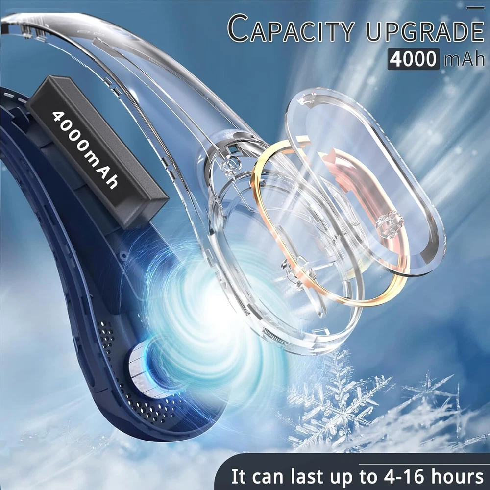 Neck Fan, USB Rechargeable Personal 4000 mAh Battery One Size, Blue Product Details Brand: ASNUG Color: Blue Electric fan design: Wearable Fan Power Source: Battery Powered Style: Modern Product Dimensions: 2.35"D x 8.6"W x 5.5"H Room Type: Office Special Feature: Portable, Bladeless Recommended Uses For Product: Cooling Wattage: 4000 milliamp_hours Voltage: 5 Volts Collection Name: Home,Office Item Weight: 0.75 Pounds Included Components: USB charging cable, Neck fan, Instruction manual Indoor/Outdoor Usage: Outdoor, Indoor Model Name: R5 Control Method: Touch Connector Type: Micro USB or USB Type A Blade Material: Plastic Reusability: Rechargeable Is Cordless?: Yes Main Power Connector Type: USB Size: One Size Item Weight: 12 ounces Country of Origin: China Item model number: R5 Batteries: 2 Lithium Polymer batteries required. (included) Mounting TypeController Type: Hanging,Neck FanButton Control MaterialNumber of Speeds: Silicone, Plastic3 [Safe Design & Cooling Upgrade] Upgraded Bladeless neck fan, which will not pinch hair or cut your fingers, ensuring safe use for long hair people, children and the elderly. Upgraded air outlet design, 360° surrounding air outlet, and a new generation of turbine blades are quickly cooled in 3 seconds. Let you feel more gentle cool breeze. [Low Noise & Comfortable] Personal neck fan after upgrading the brushless silent motor has lower noise and quieter during operation. This cooling fan is made of soft and comfortable material, ergonomically designed, light and comfortable and skin-friendly. Wearing leafless hanging neck fan can also work and study with peace of mind and enjoy the natural wind. [3 Speeds & USB Charging] 4000mAh Large-capacity battery provides 4-16 hours of working time (depending on different speeds), 3-speed of adjustment, one gear of soft wind, two gears of natural wind, three gears of strong wind, 3 speed settings meet your daily needs. [Fashionable Design] This hands-free fan can free your hands, the stylish style makes you look cool and you can take it with you in hot weather. [Portable & Practical] High quality and stylish appearance of the portable fan make it ideal for outdoor work, gym, office, lawn mowing, yard work, leisure walking, driving, traveling, camping, etc.