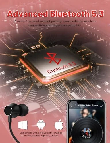Return Policy Fast Delivery Trusted seller Neckband Bluetooth Headphones, 120H Long Playtime Wireless Stereo Neckband Earbuds with Microphone, Waterproof Around The Neck Headphones in Ear Headset for Sports/Workout/Office (Black) Product Description 120H EXTRA-LONG PLAYTIME: Our neckband bluetooth headphones with low-power technology are built-in 1000mAh battery that can be fully charged in 3Hrs with Type-C charging port and played continuously for 120Hrs. If you're in a hurry to go out, our headphones can be used up to 10H after 10 minutes of charging, so you can easily cope with the unexpected work. HIGH-QUALITY HIFI STEREO SOUND:The bluetooth neckband headphones is customized with a balanced armature driver for each earbud to ensure good balance between low, high and mid-range frequencies and offer you with high-quality hifi stereo sound and deep bass. The cavity made of aluminum alloy ensures the stability of the sound without being affected by external signals. The neckband earbuds with microphone provides clear phone calls. MAGNETIC & NECKBAND DESIGN: Magnetic self -absorbing design can effectively prevent the headphones from being lost or wrapped, convenient for storage and movement, and more lasting. The lightweight U -shaped silicone neck circle uses a popular process to make it more fashionable and novel. Bluetooth Earbuds are also equipped with extra 3 pairs of soft earplugs for personalised fit. Ergonomic design, comfortable and soft, very suitable for daily use. LATEST BLUETOOTH V5.3 & ADVANCED COMPATIBILITY: Around the neck headphones bluetooth 5.3 provides fast and stable transmission without interruptions. Wireless headphones supports most bluetooth devices .It also supports Voice Assistant, just short press the power button 2 times to start "Siri" or Google Voice Assistant. WATERPROOF & SERVICE: Our neck headphones wireless bluetooth are waterproof up to IPX5, no matter when you are exercising or when it's drizzling, it's a good partner for your outdoor, besides you can rest assured that you can buy it, We are to serve you! Shipping Returns Payment Shipping Shipping is FREE to all addresses other than APO/PO boxes in the lower 48 states. All our stock ships from US-based warehouses. Shipped via USPS or UPS (depending on location and package weight) Unless stated otherwise, all orders will ship within 24-72 hours of your payment being processed. Check our feedback to see the great reviews of FAST shipping we offer. Returns Seller does not accept returns Payment We currently accept payment via eBay managed payments only. Once payment is cleared, we will dispatch your shipment within 1-3 business days. Please refer to the "Shipping" tab for more information regarding shipping speed to your destination.