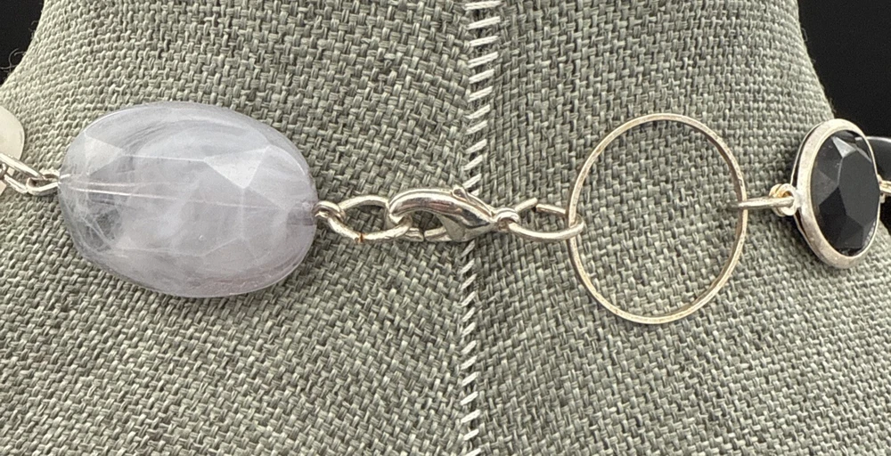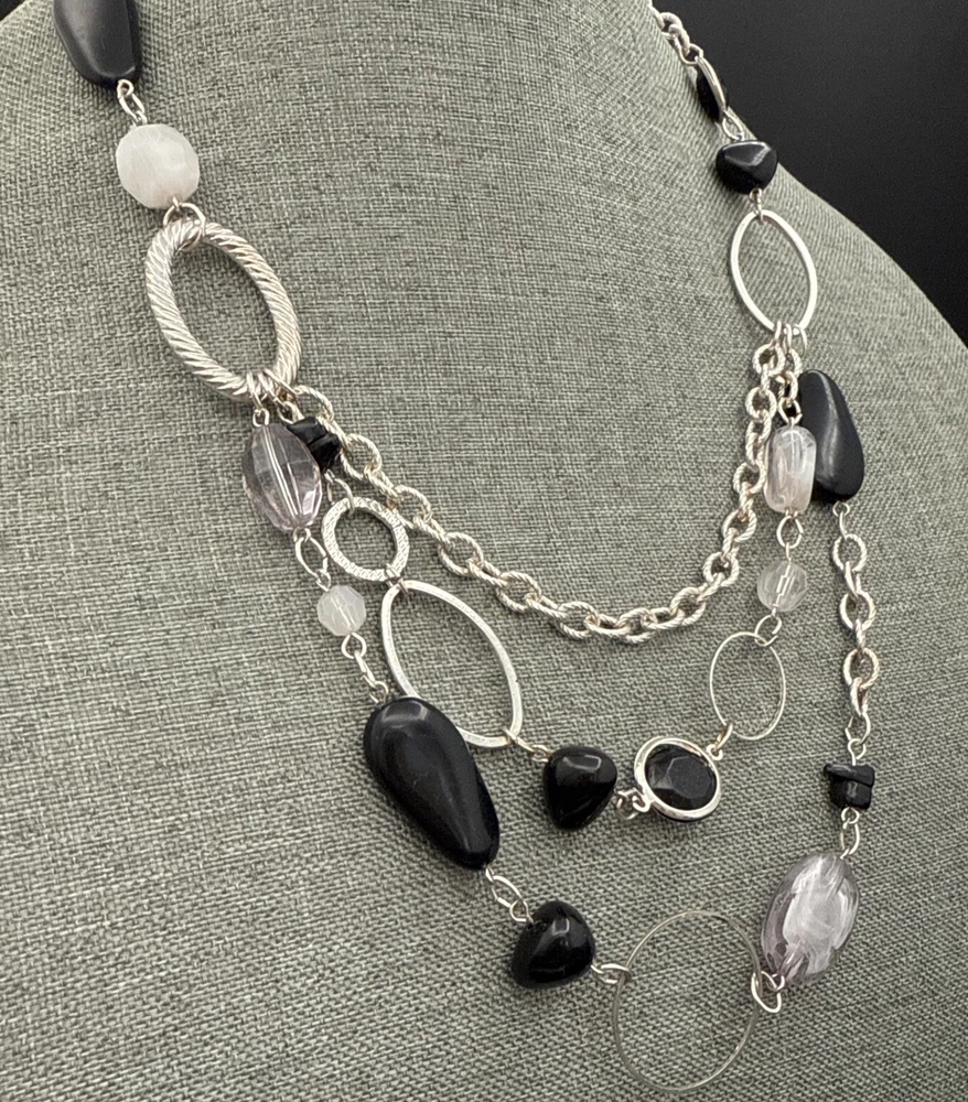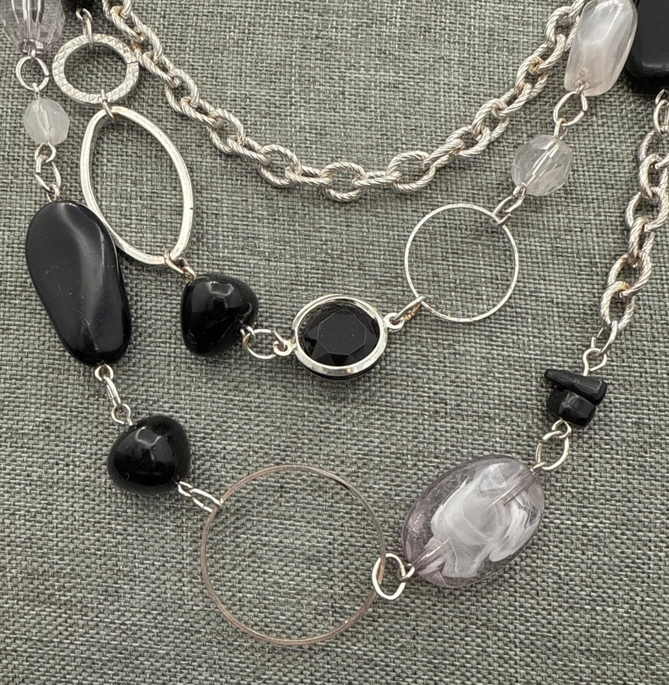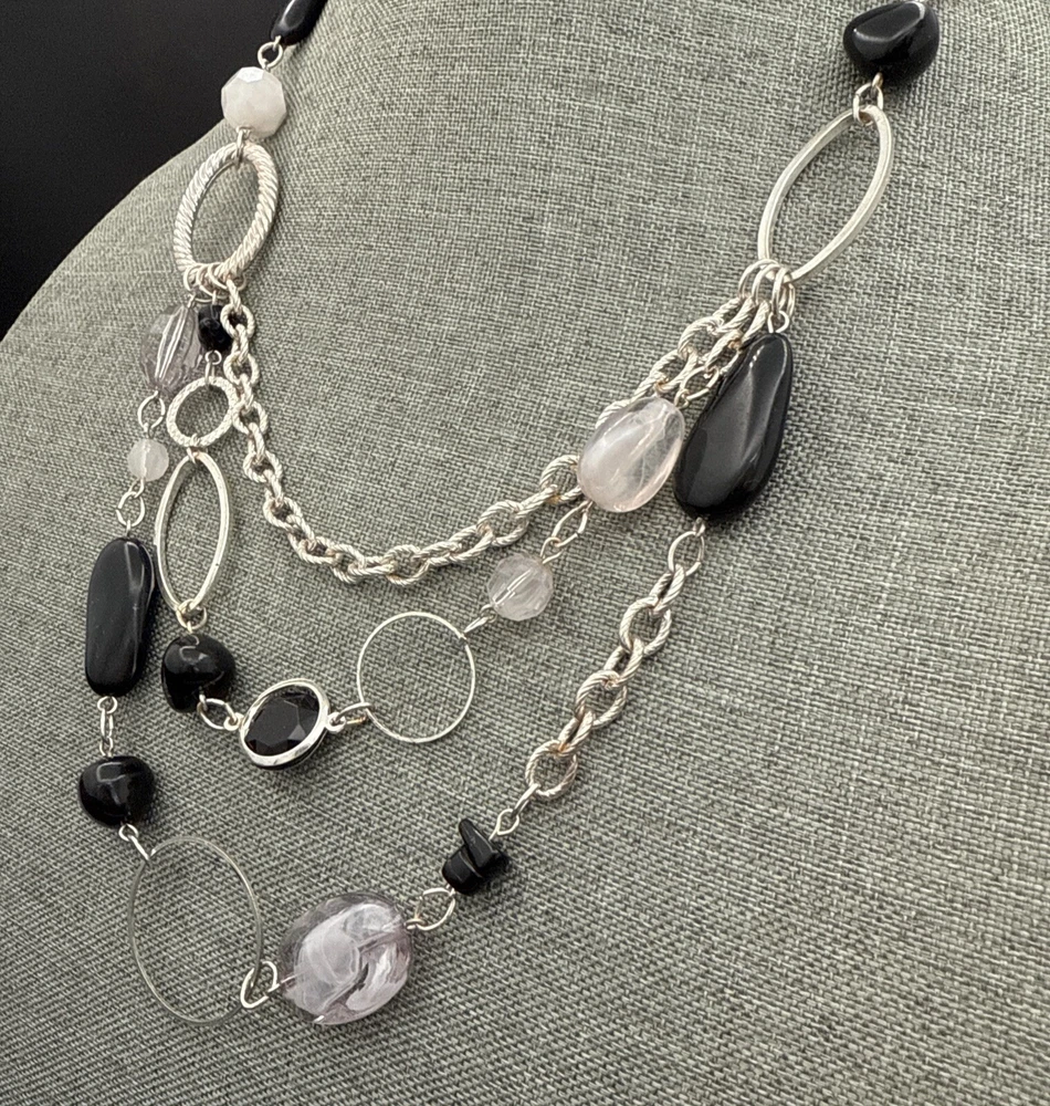 Base Metal:UnknownSigned:NoMaterial:Metal, BeadsPendant Shape:NoneCountry/Region of Manufacture:UnknownColor:Black Silver WhiteEra:UnknownBrand:UnbrandedCustomized:NoMain Stone:No StoneMetal Purity:UnknownCountry of Origin:UnknownStyle:BeadedNumber of Gemstones:ZeroPendant/Locket Type:NoneHandmade:NoAntique:NoNecklace Length:21 ingtin13:Does not applyVintage:YesChain Type:UnknownMetal:UnknownType:NecklaceTheme:BeautySeller Warranty:YesOccasion:AllClosure:LobsterWholesale:NoMPN:UnknownUPC:Does not apply