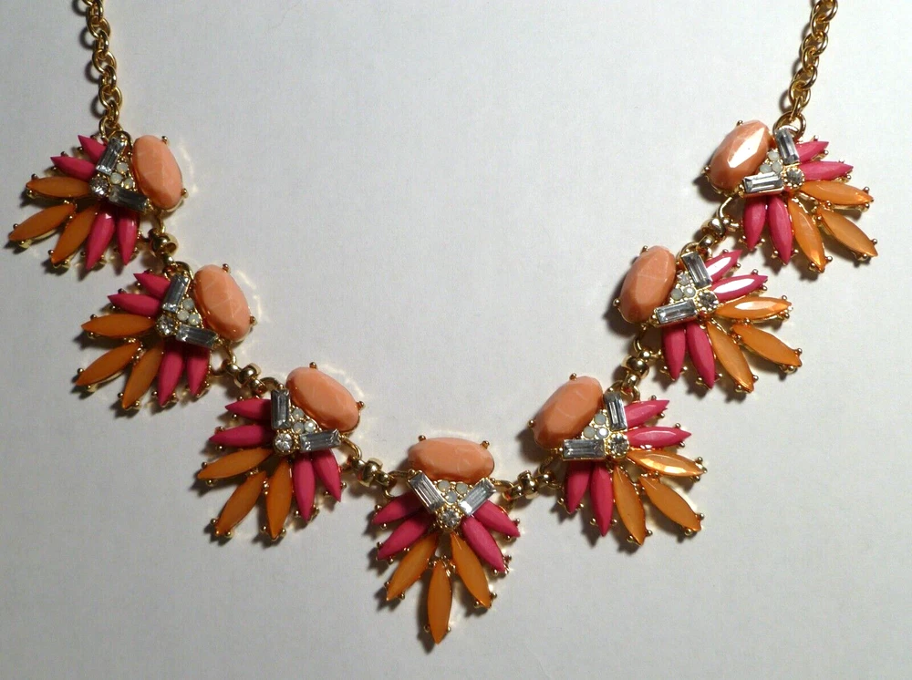 Necklace Dia & Co pink peach gold tone cut resin rhinestone 24". This necklace is in good condition, adjustable, and 24 inches long. Please s ee photos as they help with my description. Shipping ~ Ground advantage takes 3-5 business days. I ship within 2 business days. Combined shipping ~ Combined shipping cost is automatically available at checkout when you order more than one item from me. Thanks for looking. Returns~ Item may be returned within 30 days for refund. The refund will be issued once the item is received in original selling condition. Damage~ I package my sold items well but i f your item happens to be received damaged please provide me with photos of damage so I can file a damage claim with USPS. Please keep the box or envelope and all shipping materials for claim. Questions~ Feel free to message me. If there is any issue with order please contact me first so I can help you in a timely and friendly manner. International~ All items are shipped via eBay's global shipping program. You may want to c heck which customs and import charges may apply before you purchase or bid. Buyer is responsible to pay if there is any additional import charges, d uties, t ariffs, e xcise taxes, penalties, charges, v alue added taxes, etc. Check with your country's customs office for more specific details if you are not sure. Thank you.