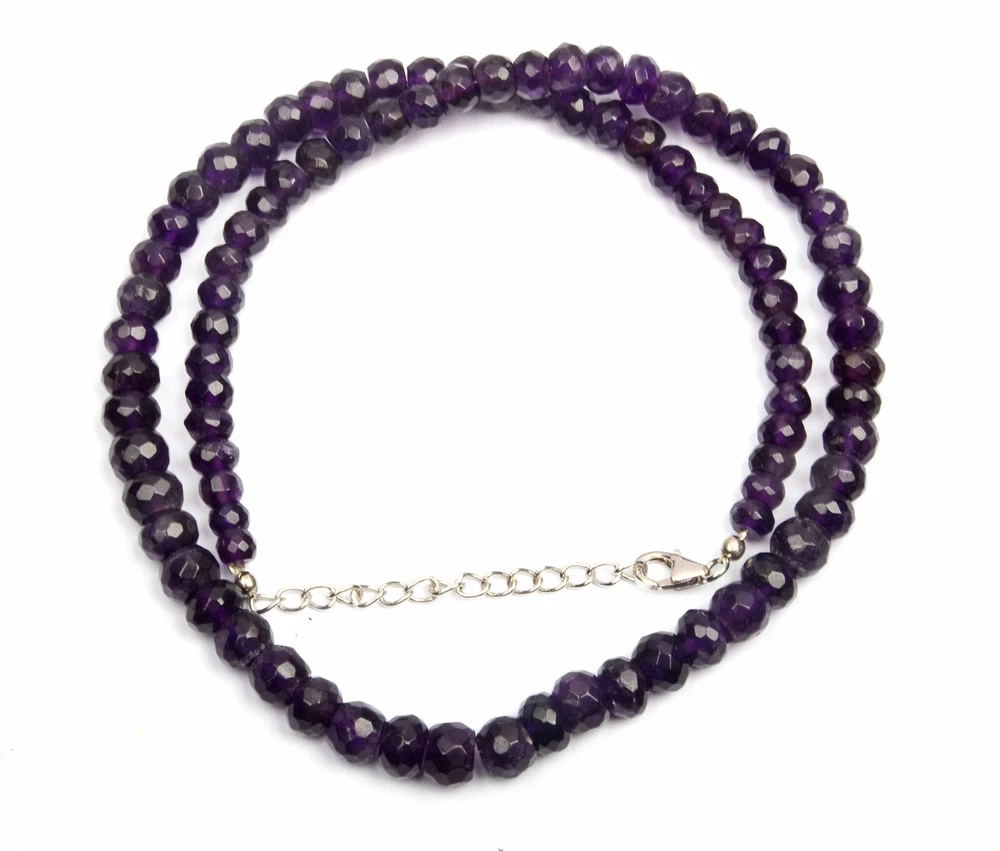 Modified Item: No Secondary Stone: Amethyst Closure: Lobster Main Stone Treatment: Not Enhanced Country of Origin: India Features: Adjustable Style: Beaded Pendant Shape: Rondelle Brand: Handmade Colored Diamond Intensity: Fancy Dark Main Stone Color: Purple UPC: Does not apply Personalize: Yes Setting Style: Cluster Color: Purple Modification Description: New Item Main Stone: Amethyst Country/Region of Manufacture: India gtin13: Does not apply Occasion: Anniversary, Birthday, Christmas, Engagement, Valentine's Day, Wedding Necklace Length: 18 in Wholesale: Yes Cut Grade: Excellent Metal Purity: 925 parts per 1000 Metal: Sterling Silver Type: Necklace Material: Gemstone Number of Gemstones: 1 Main Stone Shape: Rondelle Theme: Beach, Beauty, Fashion & Costumes, Love, Luck, Nature, Travel & Places Base Metal: Fine Silver Main Stone Creation: Natural